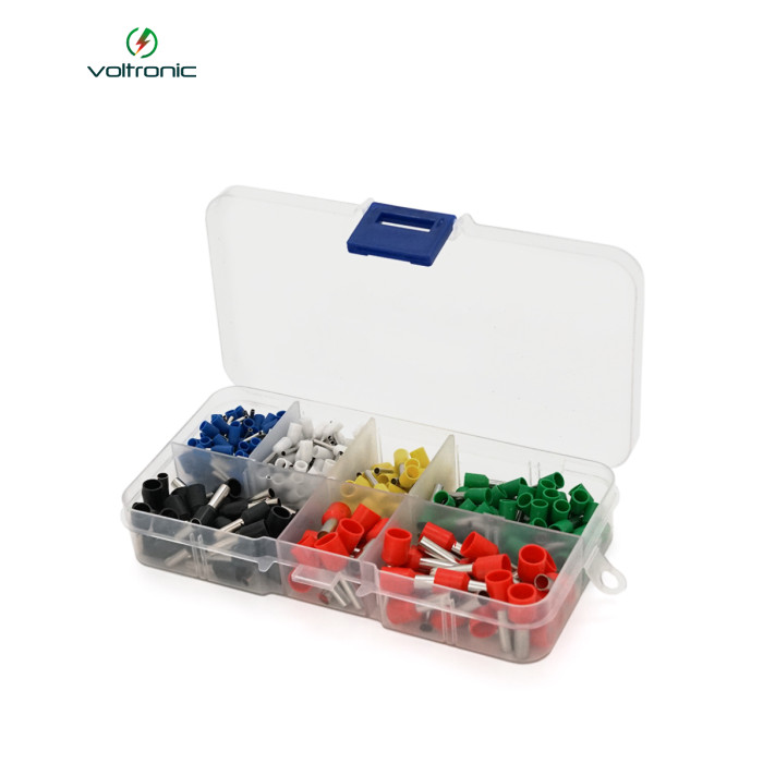 | Опис: Даний набір включає чотири кабельні наконечники: Е0510, Е7508, Е7510, Е10-10. Наконечники призначені для з`єднання та зміцнення кабелів в електричних ланцюгах. Характеристики: 1. Е0510 - кабельний наконечник із ізольованим гільзовим терміналом, переріз дроту 0,5-3 мм², струм до 24А. 2. Е7508 - кабельний наконечник із ізольованим гільзовим терміналом, переріз дроту 2,5-6 мм², струм до 41А. 3. Е7510 - кабельний наконечник із ізольованим гільзовим терміналом, переріз дроту 2,5-6 мм², струм до 57А. 4. Е10-10 - подвійний наконечник для з`єднання двох дротів, переріз дроту 10 мм², струм до 57А. |