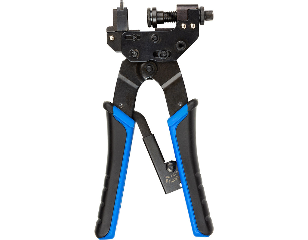 Інструмент для стискання компресійних роз'ємів F/RCA/BNC на кабель типу RG-59/RG-6. Обтискач зручно складається завдяки ручкам-замкам.