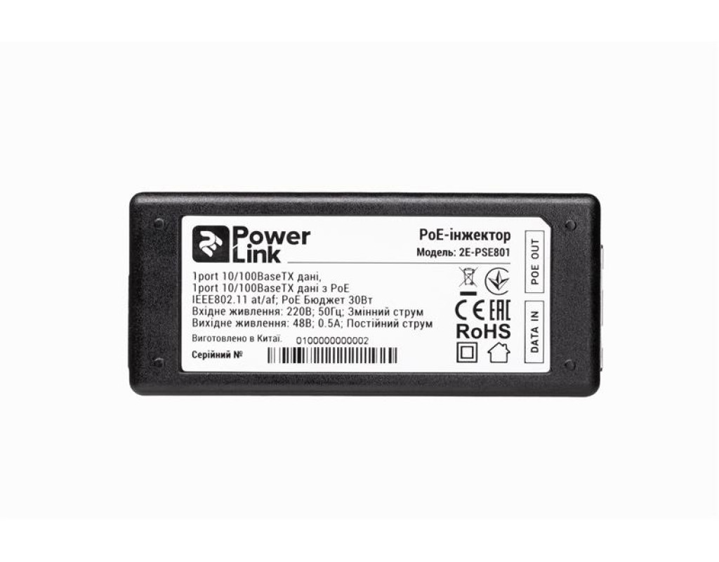 PoE-інжектор 2E PowerLink PSE801 (1xFE, 1xFE PoE, 802.3af/at (до 30 Вт))