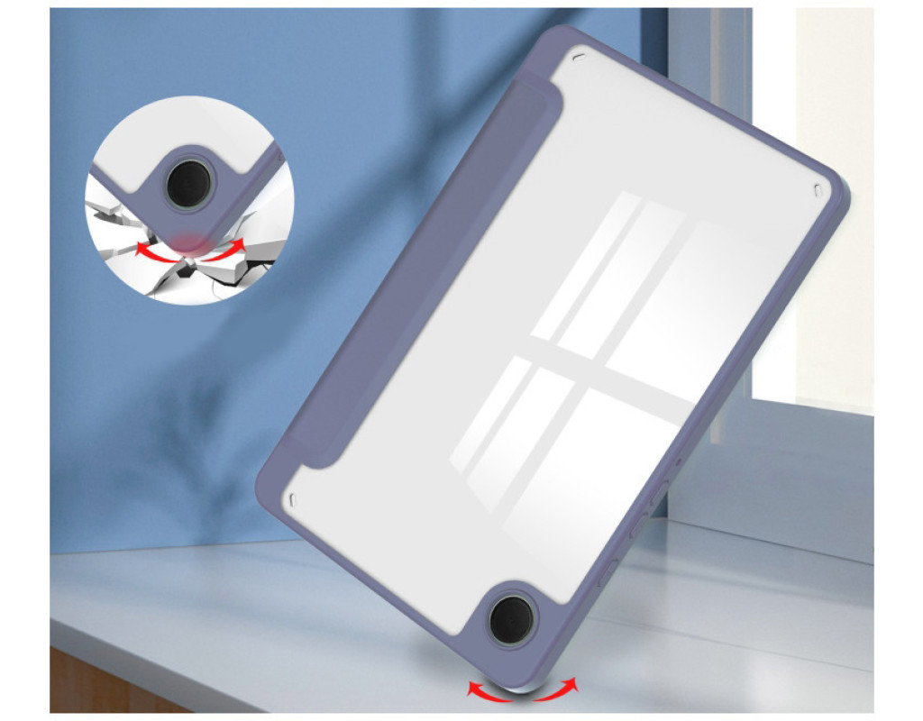 • Идеальное прилегание — гибкая силиконовая рамка обеспечивает плотную фиксацию планшета, а прозрачная задняя панель сохраняет его стильный дизайн