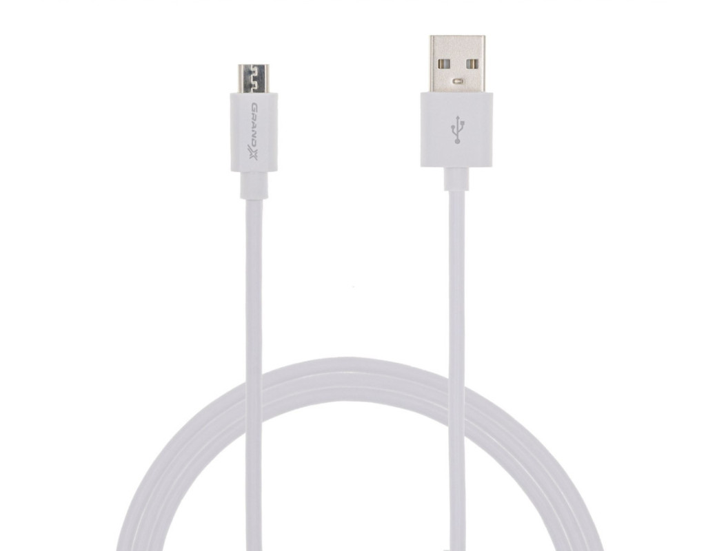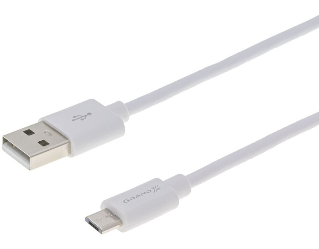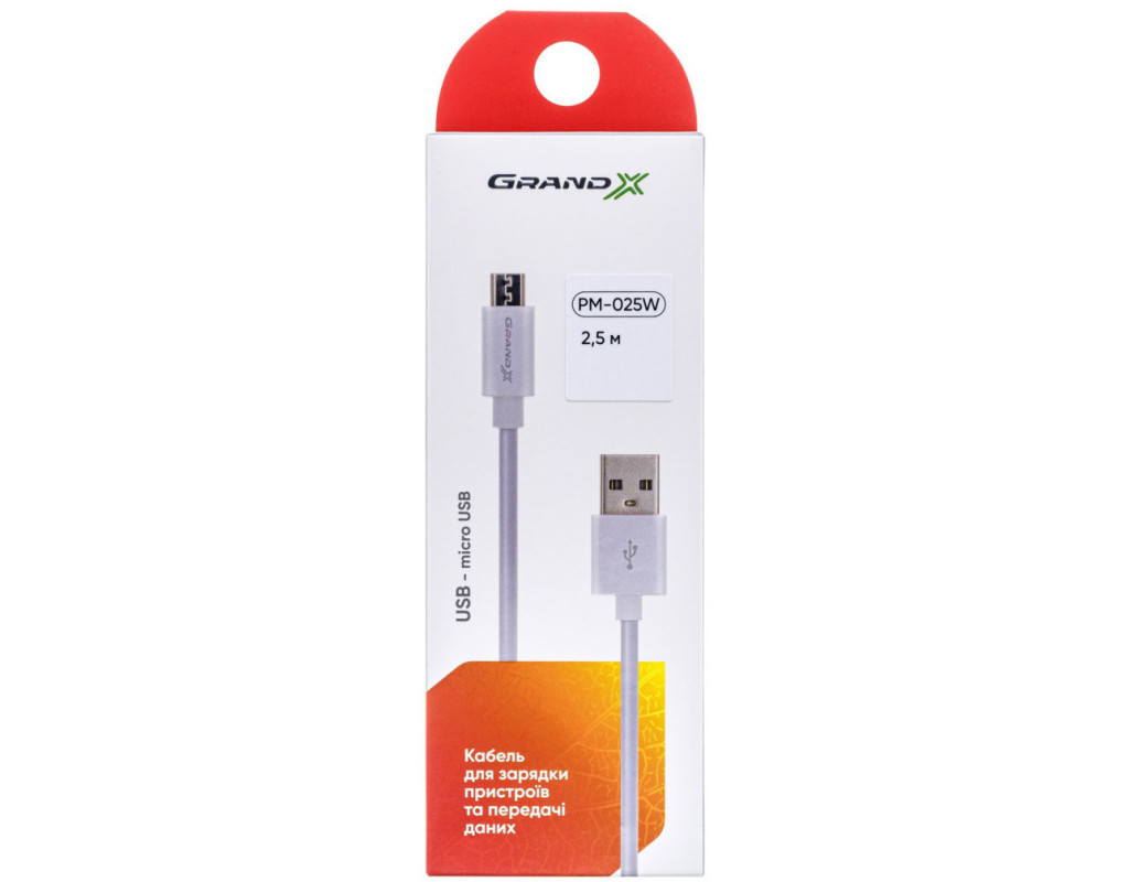 Дата кабель USB 2.0 AM to Micro 5P 2.5m white Grand-X (PM025W)