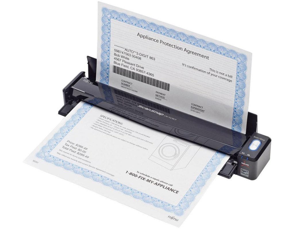Сканирует одним нажатием кнопки Достижение организации с помощью ScanSnap iX100 начинается с нажатия одной кнопки и заканчивается множеством функций повышения производительности, которые позволяют вам опережать стек. Компактный и портативный Сканер ScanSnap iX100 весом всего 400 г обеспечивает удобство портативности и простоту использования. Сканируйте где угодно и когда угодно Подключите iX100 к компьютеру или интеллектуальному устройству (как для iOS, так и для ОС Android) в офисе и дома, используя существующие среды Wi-Fi с Access Connect Connect Mode. Подключение также возможно в средах без Wi-Fi, использующих режим прямого подключения, так как сам сканер функционирует как точка доступа. Питание от аккумулятора На одном заряде можно отсканировать до 260 документов, затем зарядить с помощью с помощью зарядного устройства USB. Быстрая оцифровка Сканирование 5.2 секунды на страницу, даже при цветном разрешении 300 точек на дюйм! Двойное сканирование Сканирование двух небольших документов, таких как визитные карточки или квитанции одновременно. Автоматическое сшивание двух страниц Можно сканировать даже диаграммы. Просто сложите его пополам, отсканируйте обе стороны, и iX100 автоматически соединит его вместе. Встроенный микропроцессор «GI» Двухъядерный процессор «GI» с установленным процессором выполняет интеллектуальное улучшение изображения, отвечающее за великолепно выглядящие изображения с существенно более быстрыми результатами и более сложной связью. - Обработка изображения: автоматическая коррекция и вывод изображения