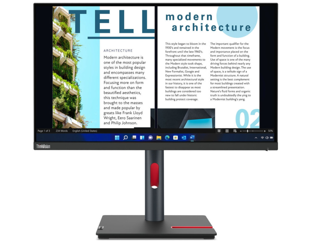 | Монитор Lenovo ThinkVision P24q-30 (63B4GAT6UA) — это сочетание впечатляющего качества изображения и эргономичности, что делает его незаменимым элементом для профессионалов. С диагональю экрана 23.8 дюйма и разрешением 2560 x 1440 пикселей, этот QHD-дисплей гарантирует четкость и детализацию каждого кадра. Тонкая рамка лишь подчеркивает просторный вид, позволяя создавать безграничные экраны при подключении нескольких мониторов одновременно. <Тип матрицы IPS> означает, что вы сможете наслаждаться высокой точностью цветов и исключительным качеством изображения, даже просматривая изображения под углом до 178 градусов. Это является значительным преимуществом для дизайнеров и фотографов, которые ценят точность цветопередачи. Благодаря 99% охвату цветового пространства sRGB и среднему ΔE менее 2, вы получите профессиональные результаты без лишних усилий. Монитор поддерживает технологию HDR10, которая обеспечивает глубокий контраст и реалистичность при отображении динамичных сцен. Яркость в 300 кд/м2 и статическая контрастность 1000:1 усиливают четкость, делая текст и эскизы детализированными, что идеально для критических визуальных задач. Подсветка WLED добавляет яркости, не уступая при этом энергоэффективности. С заботой о глазах пользователя, монитор оснащён технологией Eye Comfort и Natural Low Blue Light, которые уменьшают вредное синее излучение без искажения цветов. Это делает работу перед экраном более комфортной, независимо от продолжительности. Важной особенностью является <многофункциональность подключений> — 1 х USB Type-B, 1 х HDMI, 4 x USB 3.2, 2 x DisplayPort — что позволяет легко интегрировать монитор в уже существующую систему или использовать его вместе с дополнительными устройствами. Интеграция с программой Lenovo ThinkColour упрощает настройку, позволяя адаптировать экран под ваши нужды с помощью мыши. Эргономичная подставка обеспечивает <множество вариантов регулировки>: поворотный механизм Pivot, возможности наклона, регулировка по высоте и поворота Swivel, делая пространство рабочего места максимально удобным и продуктивным. Поддержка VESA 100x100 мм позволяет легко закрепить монитор на стене или стойках. Экологичность также является важной чертой Lenovo P24q-30 — он упакован в переработанные материалы. Этот монитор не только повысит вашу продуктивность, но и добавит вашему офису или студии ощущение порядка и современности. |