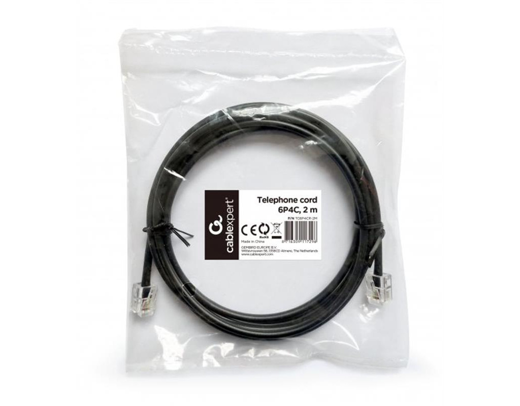 Кабель телефонный Cablexpert (TC6P4CR-2M) CCS, 6P4C, 2м, черный