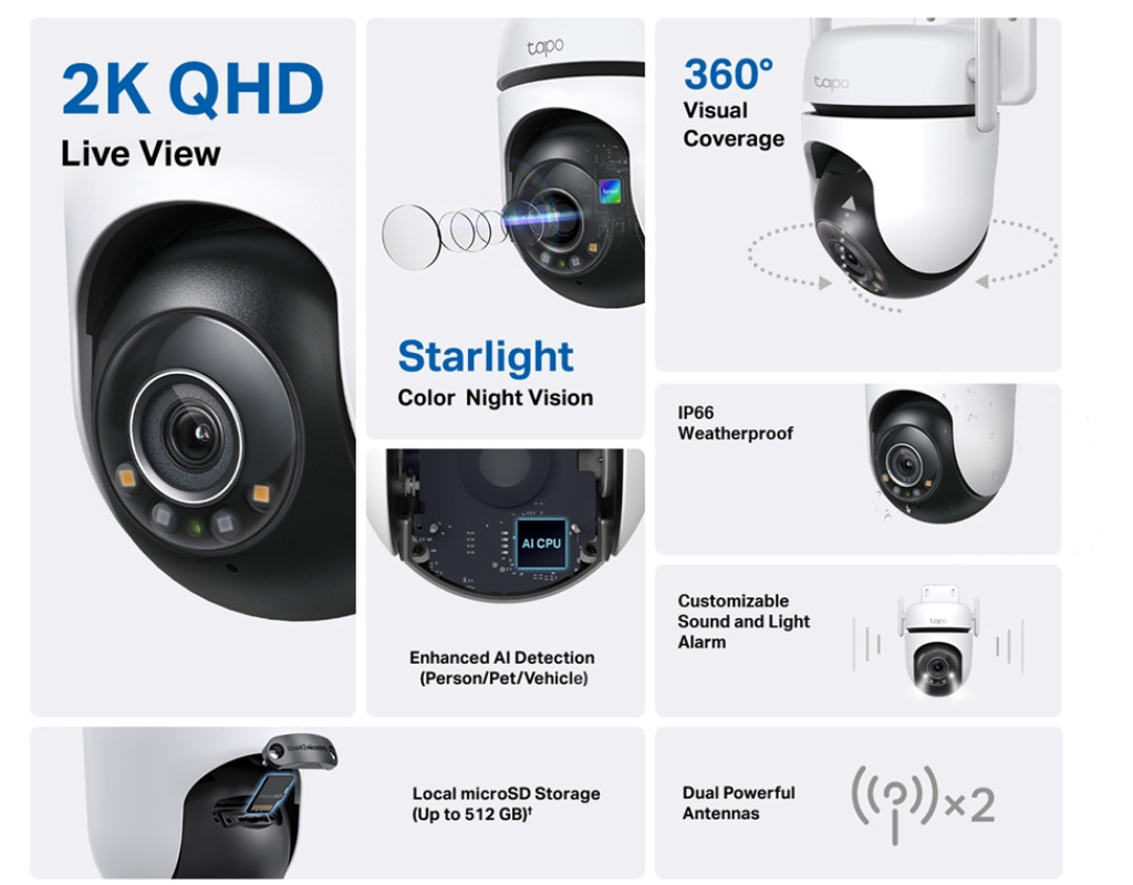 | Камера видеонаблюдения TP-Link TAPO-C520WS — это настоящий прорыв в мире безопасности и наблюдения. Благодаря сочетанию инновационных технологий и современного дизайна, эта камера обеспечивает всестороннюю защиту вашего пространства, делая его более безопасным и под контролем. TP-Link TAPO-C520WS — это IP-камера типа PTZ, которая поддерживает как проводное, так и беспроводное подключение, предоставляя вам свободу в выборе способа настройки. Благодаря разрешению 4 Мп (2560 x 1440), она предлагает четкие и детализированные изображения, а CMOS-матрица размером 1/3“ помогает получать яркие и резкие кадры. Одним из уникальных преимуществ является комбинированная подсветка (ИК + LED), которая гарантирует отличную видимость на расстоянии до 30 метров даже в полной темноте. Благодаря датчику Starlight, TAPO-C520WS воспроизводит изображения, которые ярче большинства цветных камер ночного видения. Камера предлагает несколько режимов ночного видения, которые позволяют вам адаптировать её работу под ваши нужды. Цветной режим обеспечивает насыщенные цвета 24/7, умный режим активирует прожекторы только при обнаружении движения, а инфракрасный режим обеспечивает качественное ночное изображение без освещения. Благодаря широкому диапазону обзора 360° по горизонтали и 130° по вертикали, вы можете контролировать все углы вашего пространства с легкостью. Камера оснащена интеллектуальным обнаружением, которое распознает людей, домашних животных и транспортные средства, уведомляя вас в случае необходимости. Вы можете настроить чувствительность обнаружения движения и зоны активности для вашего удобства, а также активировать режим патрулирования для регулярного осмотра важных участков. Потрясающее качество изображения 2K QHD предлагает в 1,7 раза больше пикселей, чем 1080p, что обеспечивает более четкие видео и более детальные фото. Интеллектуальное отслеживание движения помогает удерживать объекты в поле зрения даже во время их перемещения. Более того, TP-Link TAPO-C520WS поддерживает надежное локальное и облачное хранение данных. Благодаря защите от атмосферных воздействий класса IP66, камера отлично работает при температурах от -30°C до +60°C и влажности до 90%, обеспечивая стабильность в любых погодных условиях. Наконец, гибкая настройка и использование обеспечивает благодаря специальному приложению Tapo, которое позволяет просматривать потоки в реальном времени, воспроизводить записанные видео и настраивать параметры с помощью нескольких нажатий. TP-Link TAPO-C520WS — это ваш надежный партнер в обеспечении безопасности, с инновационными функциями, которые отличают эту камеру среди других. Откройте новый уровень защиты с камерой TAPO-C520WS и наслаждайтесь спокойствием за ваше пространство. |
