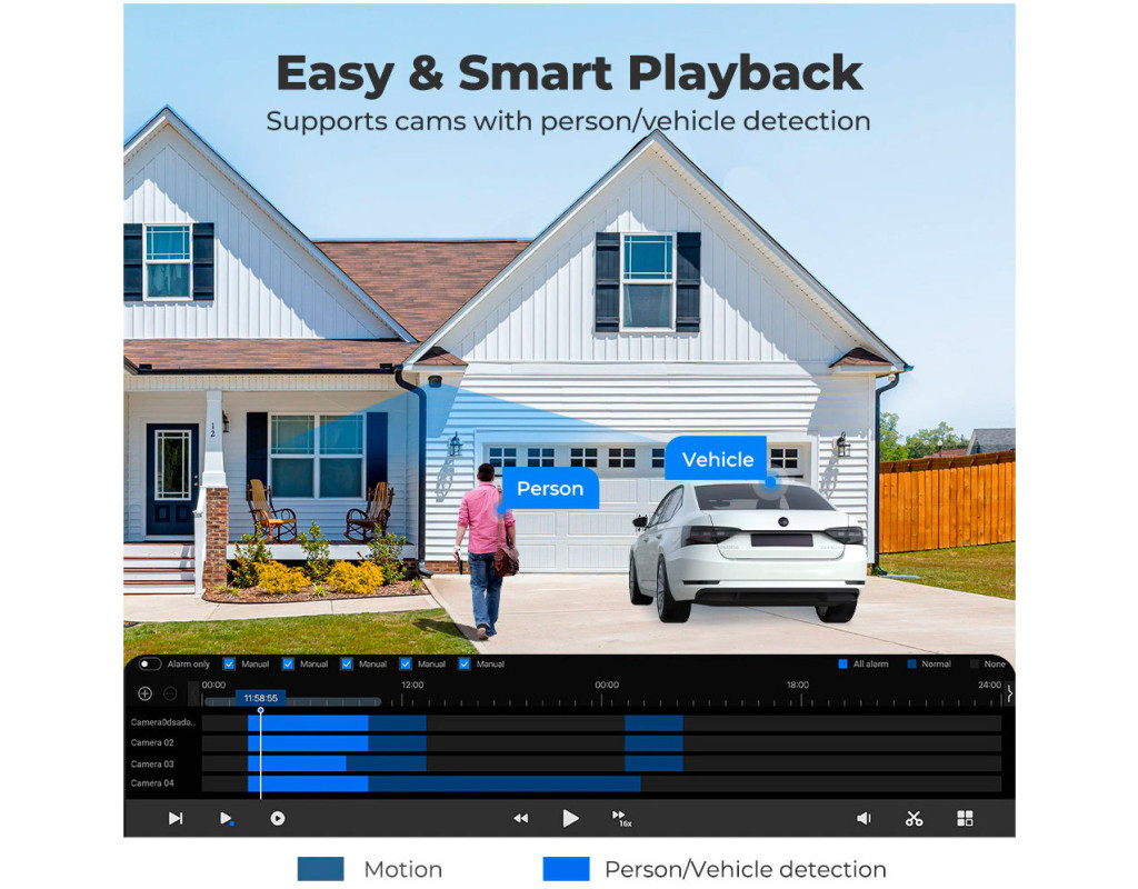 NVR (сетевые), 4096 x 3072, 1 x HDMI, 1 x VGA, Аудиовыходы - 1 x RCA