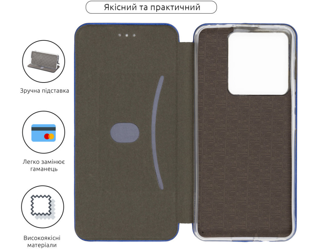 совместимость с моделями - Xiaomi Redmi Note 13 Pro 5G, Тип чехла для телефона - книжка, Назначение - модельный, Материал - полиуретан, Цвет - синий