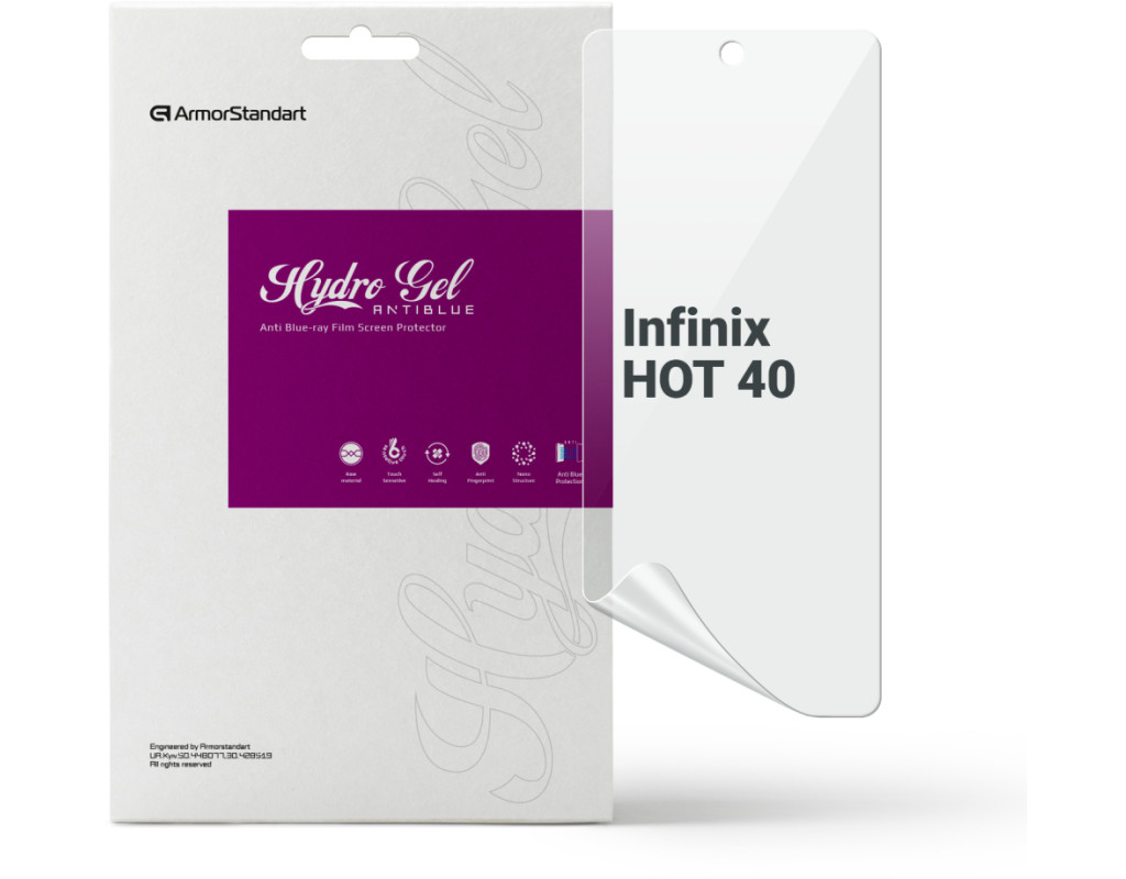 Назначение - для телефона, Вид покрытия - защитное, гидрогелевая, Совместимость с моделями - Infinix HOT 40, Количество в упаковке - 1 шт