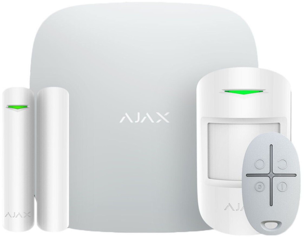 Ajax StarterKit 2 - cтартовый комплект системы безопасности с возможностью фотоверификации тревог. Комплект беспроводной системы безопасности StarterKit 2 убережет от ограбления. Ajax моментально сообщит вам и охранной компании о взломе двери. Ajax StarterKit 2 управляется со смартфона из любой точки мира. Даже если в доме отключат электричество и интернет, хаб продолжит защищать ваше имущество. В комплект StarterKit 2 входят четыре устройства: Hub 2 - Хаб контролирует работу устройств системы безопасности. А вы всегда знаете, что происходит в доме благодаря пуш-уведомлениям, смс и звонкам. MotionProtect - Датчик движения с первых шагов реагирует на постороннего в охраняемом помещении. DoorProtect - Датчик моментально реагирует на открытие. Это первая линия обороны вашей системы безопасности, которую можно установить на любой тип двери. SpaceControl - Брелок для ключей ставит и снимает дом с охраны. А одно нажатие тревожной кнопки вызовет подкрепление в экстренной ситуации. Система управляется удаленно с помощью мобильных приложений на iOS и Android. В несколько кликов можно настроить датчики, активировать частичную охрану и проверить состояние каждого устройства. В приложении можно смотреть в реальном времени видеопоток с видеокамер, которые поддерживают протокол RTSP.Ajax легко подключается к пульту охраны. Запрос на обслуживание можно отправить сразу из мобильного приложения — в списке есть Полиция охраны Украины и более 45 частных охранных компаний со всей страны. Преимущества Ajax StarterKit 2
