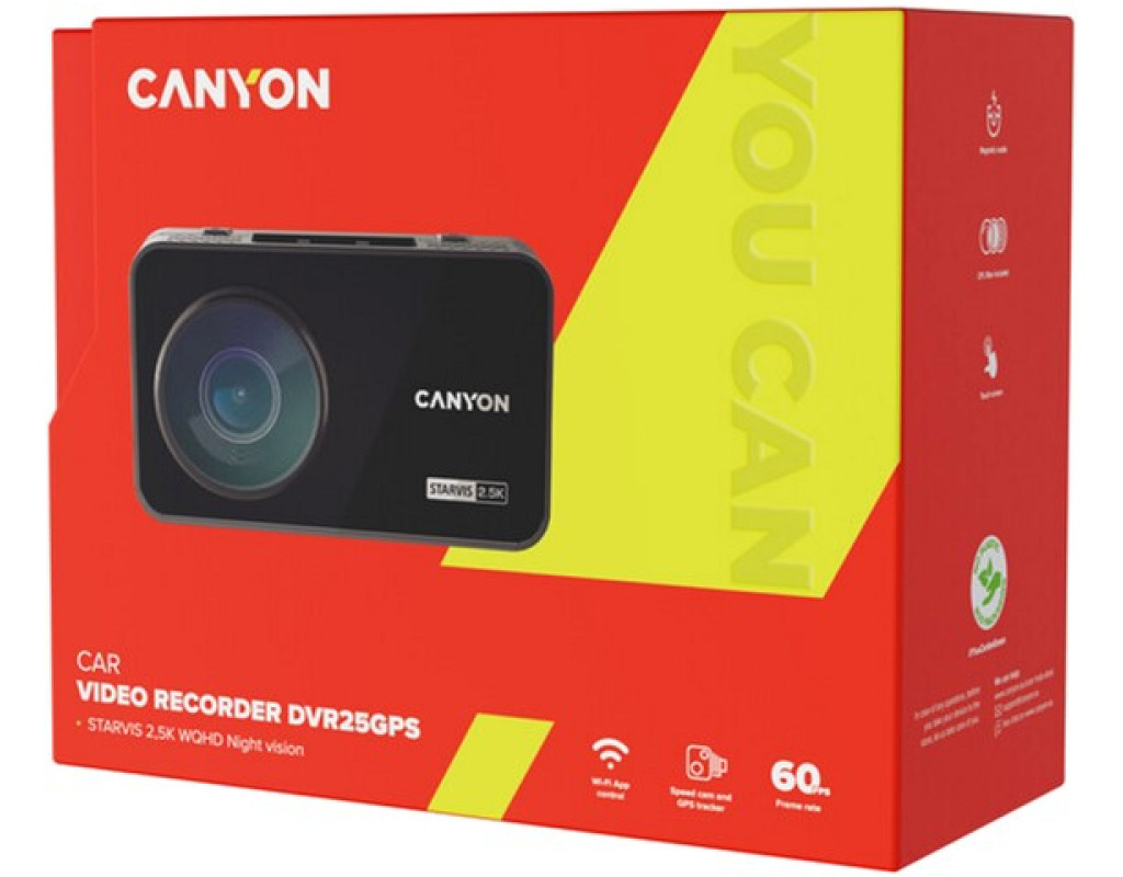 | Canyon DVR25GPS — чемпион мира видеорегистраторов. Эта камера, оснащенная замечательным сенсором Sony Starvis 335, снимает видео в формате 2.5K со скоростью 60 кадров в секунду. Благодаря широкому полю обзора 140° вы можете быть уверены, что он обеспечит полный охват вашего окружения даже при слабом освещении. Установка очень проста благодаря входящему в комплект магнитному креплению, обеспечивающему надежную установку. Благодаря надежному суперконденсатору видеорегистратор работает безопасно и стабильно. Но это не все! Вы можете удобно управлять устройством прямо со своего смартфона, используя соединение Wi-Fi и наше многоязычное приложение. Благодаря 3-дюймовому сенсорному экрану интуитивно понятное управление всегда у вас под рукой. Canyon DVR25GPS не только предлагает исключительную функциональность, но также может похвастаться элегантным итальянским дизайном с глянцевой передней частью, которая органично вписывается в интерьер вашего автомобиля. Это видеорегистратор, сочетающий в себе стиль и содержание. И вот вишенка на торте: встроенный GPS-модуль позволяет отслеживать скорость и местоположение вашего автомобиля. Попрощайтесь со штрафами: функция контроля скорости информирует вас о предстоящих камерах контроля скорости, а база данных обновляется каждую неделю. Это как если бы второй пилот всегда присматривал за тобой. Воспользуйтесь этой возможностью и испытайте повышенную безопасность, удобство и спокойствие в каждой поездке. Приобретите Canyon DVR25GPS сегодня и поднимитесь на новый уровень уверенности за рулем.