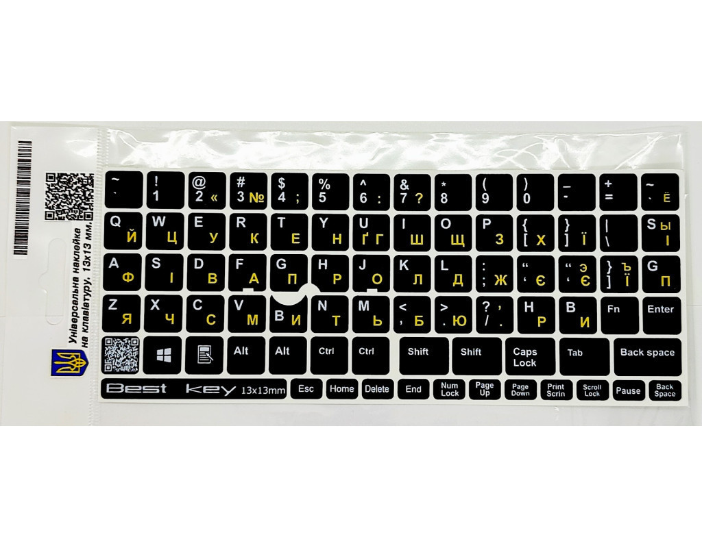 Наклейка на клавиатуру Best key универсальная 13х13мм. Наклейка на клавиатуру универсальная непрозрачная. Изготовлена по специальной технологии, которая обеспечивает не стирание букв. Основание матовое схоже с пластиком клавиш. Подходит для клавиатур из Point Stick. В наклейках есть 76 клавиш размером 13х13 мм. которые сделаны из мягкой ПВХ пленки. |