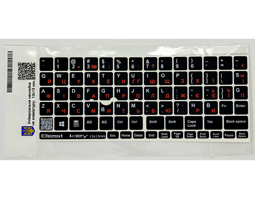 Наклейка на клавиатуру Best key универсальная 13х13мм. Наклейка на клавиатуру универсальная непрозрачная. Изготовлена по специальной технологии, которая обеспечивает не стирание букв. Основание матовое схоже с пластиком клавиш. Подходит для клавиатур из Point Stick. В наклейках есть 76 клавиш размером 13х13 мм. которые сделаны из мягкой ПВХ пленки. |