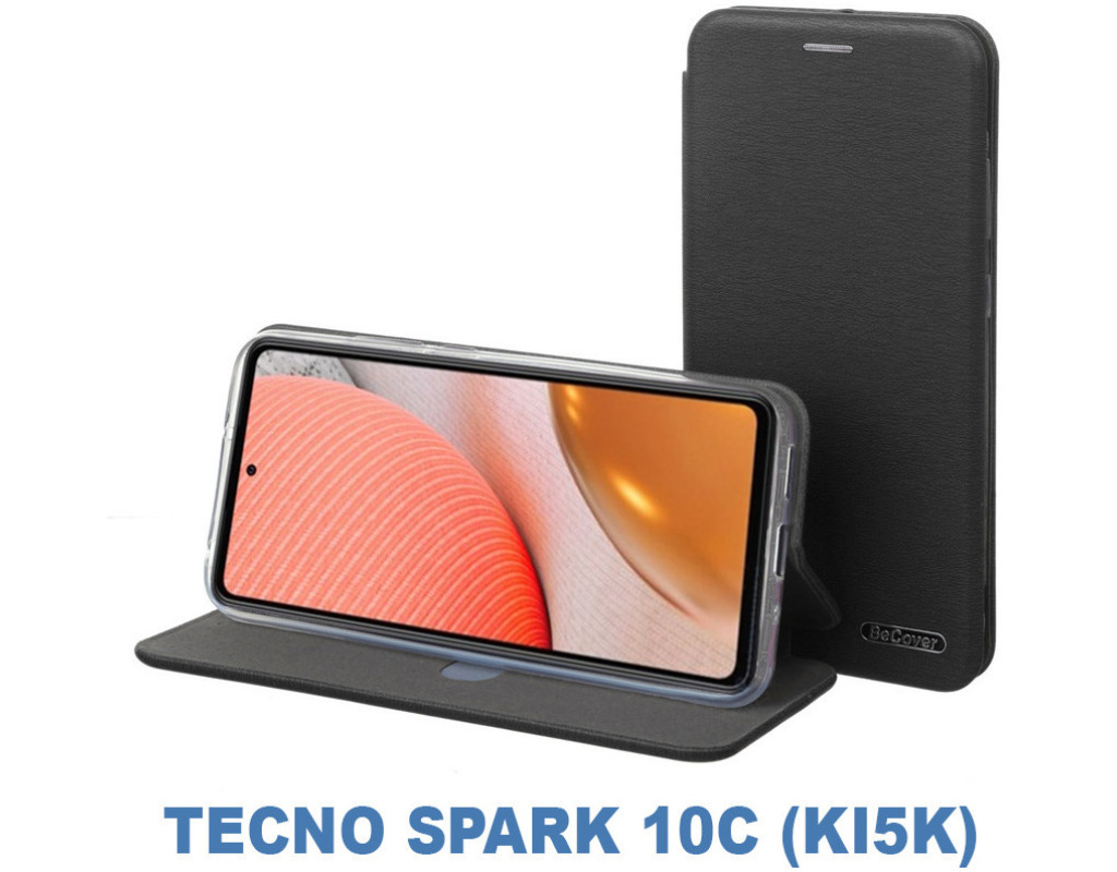 совместимость с моделями - Tecno Spark 10C, Тип чехла для телефона - книжка, Назначение - модельный, Материал - полиуретан, Цвет - черный