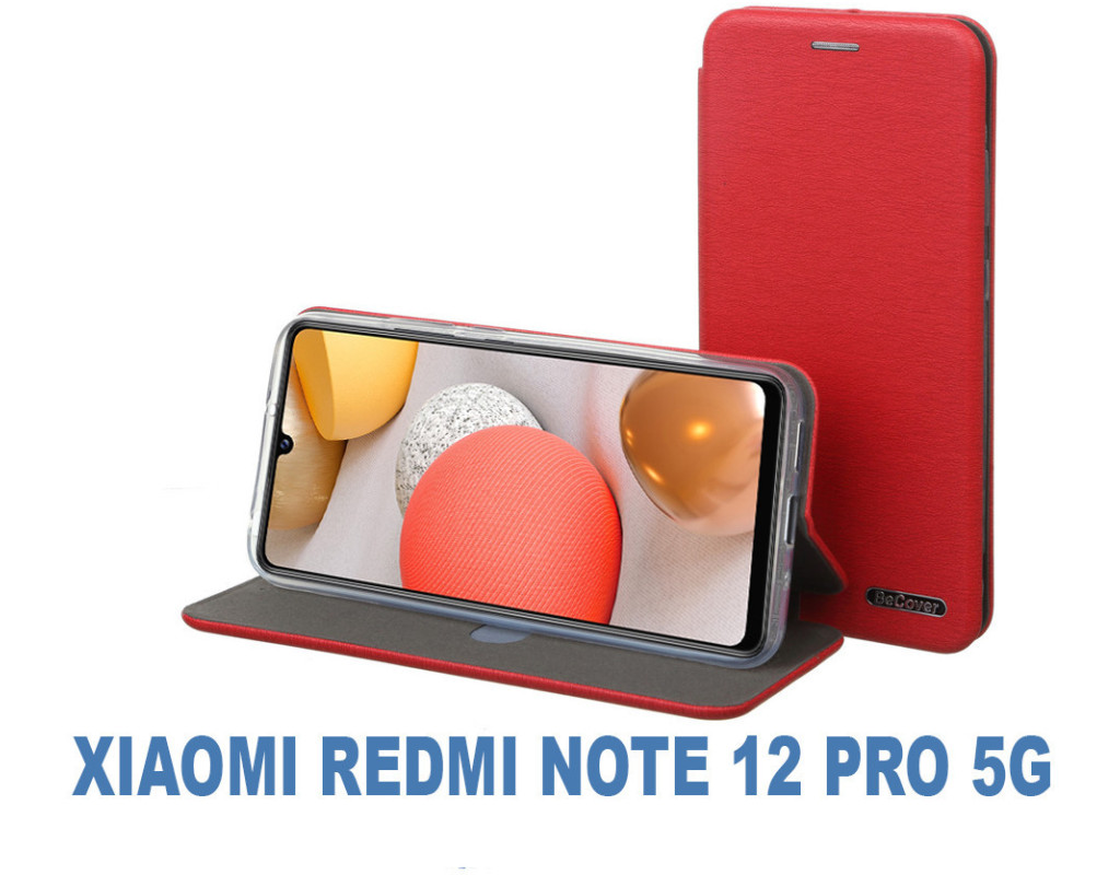 совместимость с моделями - Xiaomi Redmi Note 12 Pro 5G, Тип чехла для телефона - книжка, Назначение - модельный, Материал - полиуретан, Цвет - красный