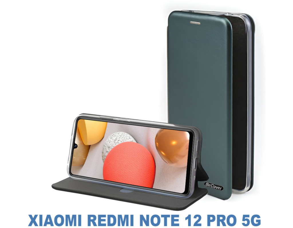 совместимость с моделями - Xiaomi Redmi Note 12 Pro 5G, Тип чехла для телефона - книжка, Назначение - модельный, Материал - полиуретан, Цвет - темно-зеленый