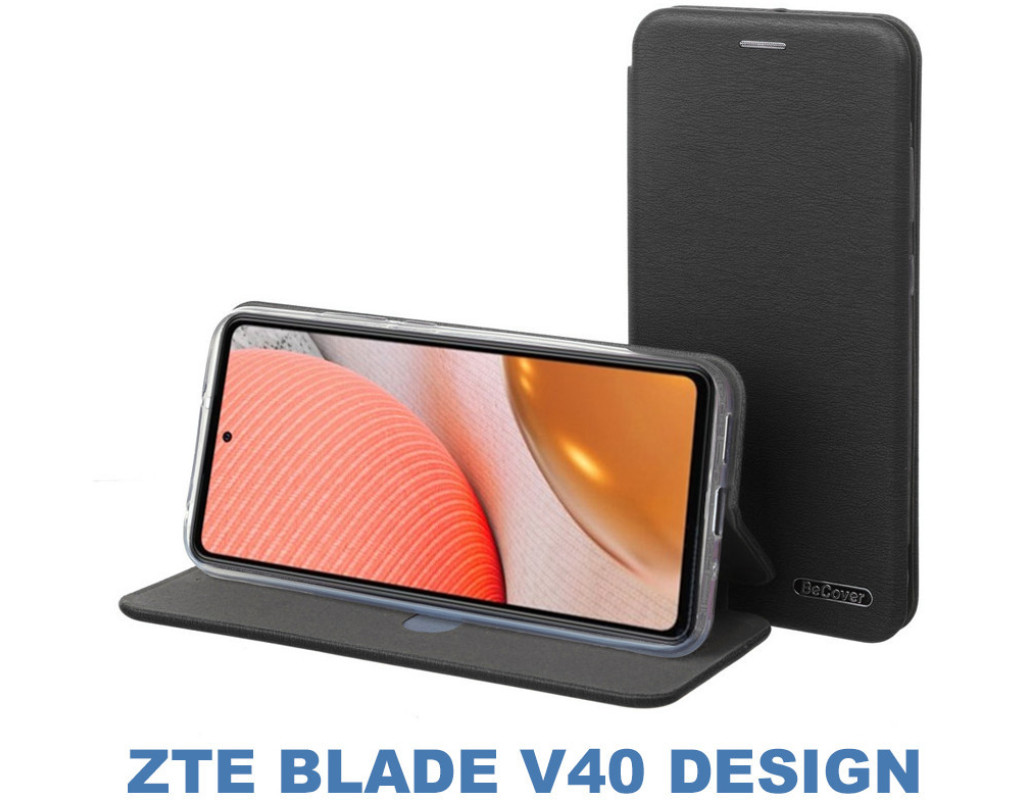 совместимость с моделями - ZTE Blade V40 Design, Тип чехла для телефона - книжка, Назначение - модельный, Материал - полиуретан, Цвет - черный