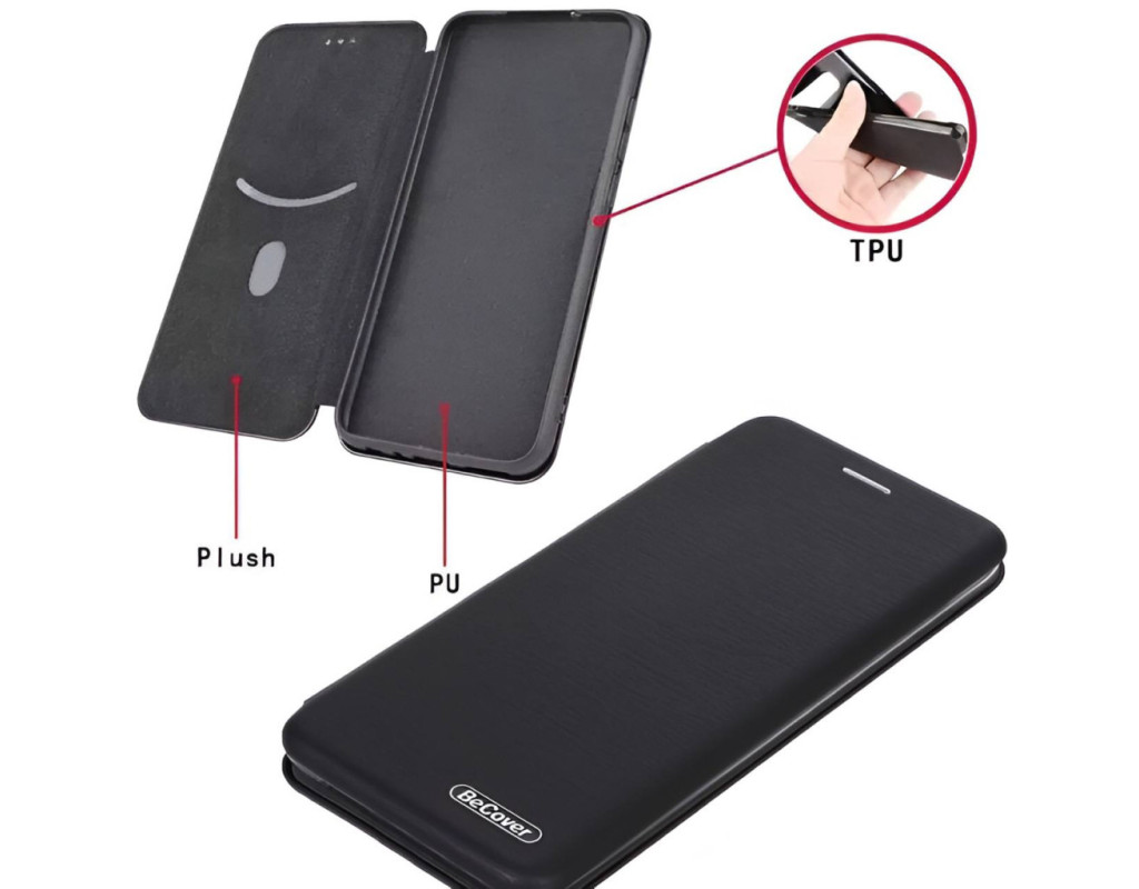 совместимость с моделями - ZTE Blade V40s, Тип чехла для телефона - книжка, Назначение - модельный, Материал - полиуретан, Цвет - черный