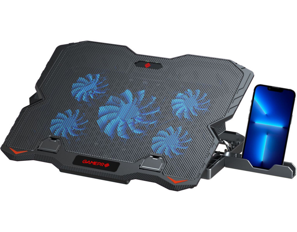 Охлаждающая подставка GamePro – это мощная система охлаждения с 5 вентиляторами, вращающимися с частотой 1000-1200 оборотов. Железная сетка + пластиковый материал основания прочный и идеальный в производительности рассеивания тепла. Встроенные ножки обеспечивают расположение ноутбука под удобным углом, а ограничители препятствуют соскальзыванию. Подсветка делает подставку не только эффективным гаджетом, но и стильным геймерским аксессуаром. Благодаря подставке GamePro даже длительные игровые баталии будут проходить в удобстве и без повреждения и перегрева ноутбука. Пусть ваша игра проходит стильно и уютно. Температура вашего ноутбука остается под контролем 5 мощных вентиляторов – играйте в любимые игры еще дольше. В комплекте идет держатель для телефона, который можно легко установить по обе стороны подставки для максимального комфорта в использовании. Скорость вращения вентиляторов с подсветкой можно отрегулировать или по желанию отключить. Благодаря ограничителям ноутбук не будет соскальзывать, а с помощью прорезиненных ножек можно зафиксировать высоту подставки. |