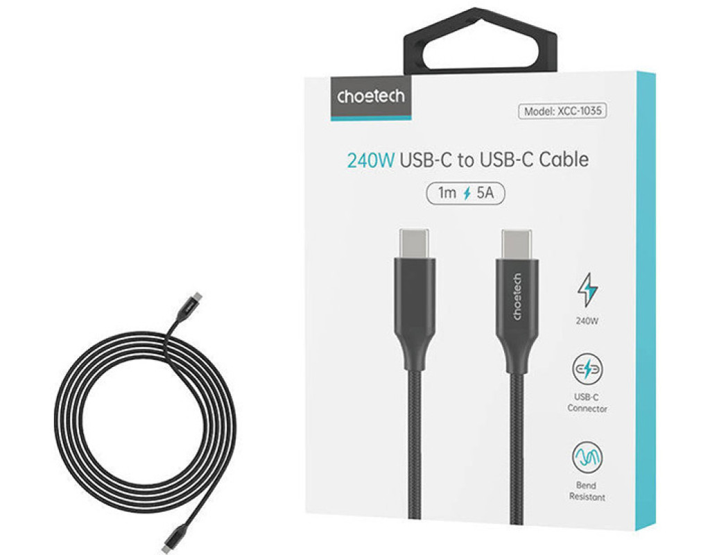 Дата кабель USB-С to USB-С 2.0m 240W USB2.0 Choetech (XCC-1036-BK)