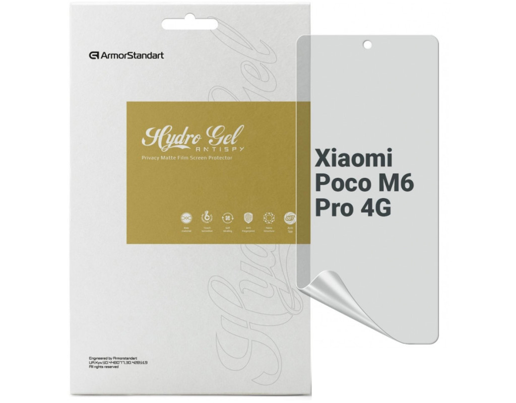 Назначение - для телефона, Вид покрытия - конфиденциальное, защитное, гидрогелевая, Совместимость с моделями - Xiaomi Poco M6 Pro, Количество в упаковке - 1 шт
