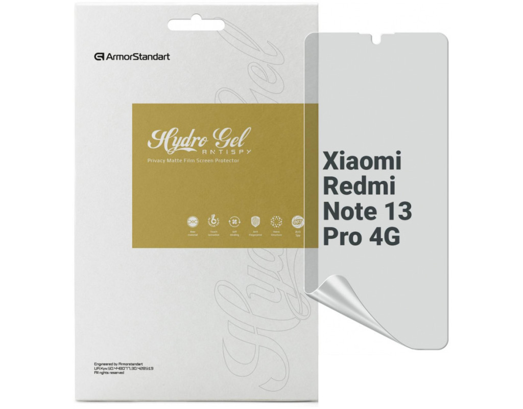 Назначение - для телефона, Вид покрытия - конфиденциальное, защитное, гидрогелевая, Совместимость с моделями - Xiaomi Redmi Note 13 Pro 4G, Количество в упаковке - 1 шт