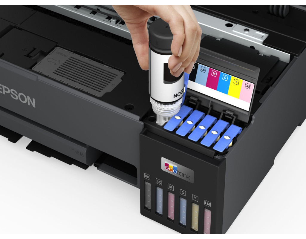 Попрощайтеся з дороговартісними картриджами Завдяки місткому 6-колірному резервуару для чорнил із контейнерами об’ємом 70 мл принтер L18050 забезпечує низьку собівартість друку, друкуючи до 1500 кольорових фотографій розміром 10x15 см / 2600 чорно-білих і 5400 кольорових сторінок, використовуючи чорнила, що постачаються в комплекті Суцільна економія Економте щоразу, коли друкуєте на принтері EcoTank, адже завдяки технології Heat-Free PrecisionCore принтер L18050 споживає менше електроенергії, заощаджуючи на рахунках за електроенергію. Він також має великі резервуари для чорнил, які наповнюються недорогими контейнерами. Висока якість фотодруку формату А3+ Цей 6-колірний принтер формату A3+ з чорнилами на основі барвника забезпечує професійні, глянцеві фотографії із плавними тональними градаціями, глибшим і природнішим чорним, детальними висококонтрастними зображеннями та природними відтінками шкіри. Простота та надійність користування Вбудована передня система резервуарів для чорнил із контейнерами зі швидкороз’ємними замками та соплами із захистом від протікань забезпечує швидке й легке заправляння за допомогою окремих контейнерів. Уникайте простоїв завдяки легкодоступній змінній ємності для відпрацьованих чорнил і ролику подачі паперу. Завдяки терміну служби y 50 000 сторінок принтер L18050 забезпечує спокій і впевненість, щоб ви могли зосередитися на зйомці чудових фотографій. Друк майже з будь-яких пристроїв Модель L18050 має надійний бездротовий фотодрук, що полегшує друк із мобільних телефонів, планшетів і ноутбуків. За допомогою Wi-Fi та Wi-Fi Direct можна надсилати документи для друку зі смарт-пристроїв, використовуючи застосунок Epson Smart Panel |