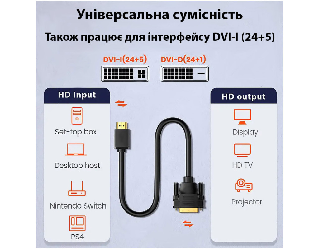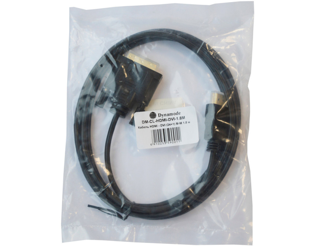 Кабель мультимедийный HDMI M to DVI M 1.8m 24+1pin Dynamode (DM-CL-HDMI-DVI-1.8M)