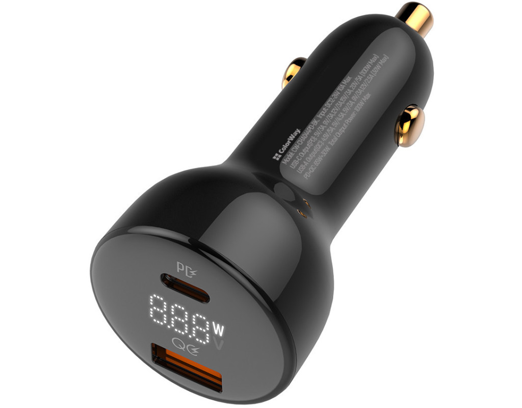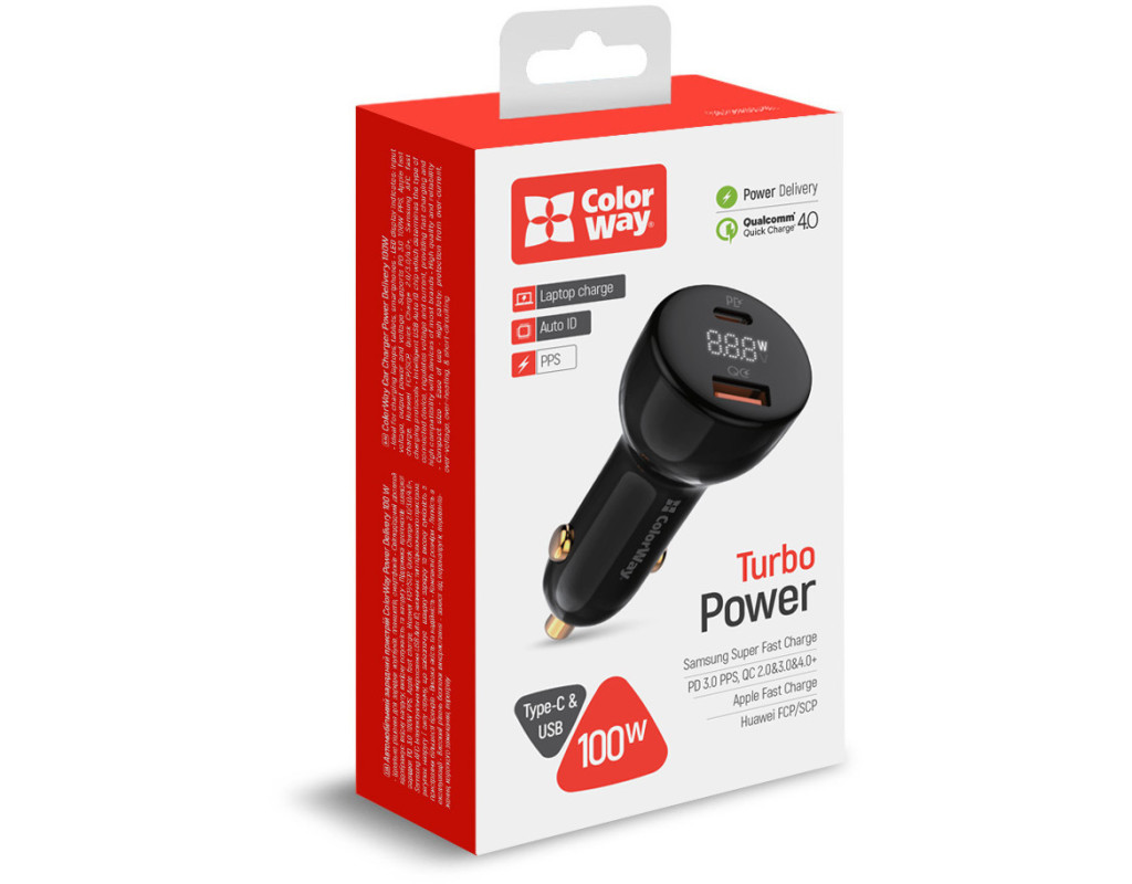 Автомобильное зарядное устройство Colorway Power Delivery Port PPS USB (USB-A + USB-C) (100W) — отличный вариант компактного и мощного зарядного устройства для использования в машине. Устройство имеет два порта USB-A и Type-C, поддерживающих технологию быстрой зарядки Quick Charge 3.0/4.0+, а также USB-C PD с поддержкой протоколов PD (Power Delivery) 2.0/3.0, 100W PPS; BC1.2 DCP 5V-1.5A; APPLE 5V-2.4A; APPLE FAST CHARGE; SAMSUNG 5V-2A/AFC/SFC; QC2.0/3.0/4.0+; HUAWEI FCP/SCP, VOOC. PPS/AFC/FCP/ Apple — быстрая зарядка. Умная зарядка быстро и безопасно может заряжать до двух мобильных устройств одновременно: смартфонов, планшетов, устройств внешних батарей и многих других. Интеллектуальная микросхема USB Auto ID определяет тип подключенного устройства, регулирует напряжение и силу потока, обеспечивает быструю зарядку и высокую совместимость с устройствами большинства брендов. Максимальной мощности 100 Вт хватит, чтобы производить подзарядку не только небольших гаджетов, но и таких энергозатратных устройств, как ноутбуки. Устройство обеспечивает высокий уровень безопасности – защиту от перенапряжения, перегрузки, короткого замыкания, перегрева, имеет крепкий и противопожарный корпус. |