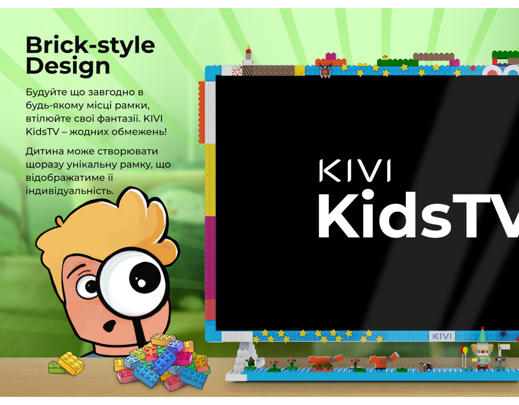 С уникальным дизайном в стиле конструктора креативно украсьте свой ТВ, развивая воображение и раскрывая творческий потенциал вашего ребенка. Теперь смарт-телевизор становится частью игры. С одной стороны, это мультимедийный развлекательный хаб, транслирующий контент в качественной и яркой картинке Full HD, с другой – пространство для творчества и самовыражения, а также часть детской игры. С KIVI KidsTV родители будут спокойны, ведь ребенок окружен безопасными для него устройствами и смотрит подходящий его возрасту контент. Не нужно беспокоиться из-за телевизора – защитное стекло на экране и надежная система фиксации ТВ к месту установки сохранит технику во время случайного «краш-теста», если детские игры зайдут слишком далеко. Brick-Style design Каждый раз ребенок может создавать уникальную рамку, которая будет отражать его индивидуальность. Телевизор совместим с самыми популярными сериями конструкторов — вы можете использовать уже имеющийся у ребенка набор или приобрести новый из любой тематики. На рамку телевизора, подставки и центральную плашку KIVI KidsTV можно прикреплять пластиковые блоки конструкторов. Стройте что угодно в любом месте рамки – никаких ограничений по размерам, формам или цветам. Protective glass 32-дюймовый Full HD экран нового KIVI KidsTV защищен закаленным стеклом. Прочное и устойчивое к царапинам, оно обеспечивает оптимальную защиту экрана, например, при попадании тяжелой игрушки, книги, даже мяча. Стекло не боится порезов острыми предметами, когтей домашних животных, металлической молнии на одежде или кабеля зарядки от телефона. Телевизор абсолютно безопасен для ребенка и будет радовать яркой картинкой на протяжении многих лет. Надежная фиксация ножек Ножки телевизора прикреплены непосредственно к металлическому каркасу и соединены между собой горизонтальной плашкой. Эта большая соединительная плашка служит дополнительным полем для креатива, ведь используется для крепления конструктора, как и вся рамка. В комплекте предусмотрен набор двухсторонних стикеров, чтобы родители смогли надежно приклеить телевизор к поверхности, на которой он будет стоять. Ночник для крепкого сна без страхов На задней панели KIVI KidsTV расположен ночник AlumiGlow, излучающий мягкий успокаивающий свет. Он создает в детской комнате уютную атмосферу и помогает детям быстрее засыпать, особенно если они не любят спать в темноте. Ночник может работать даже когда телевизор выключен. Уровень яркости света регулируется – родители (или сам ребенок) могут настроить светильник с помощью телевизионного пульта или кнопки на корпусе телевизора. Операционная система Телевизор работает под управлением современной ОС AndroidTV 11. Это официальная сертифицированная операционная система от Google, что гарантирует высокую скорость и стабильную работу смарт-телевизора. AndroidTV 11 предоставляет доступ к 10 000+ игровых, учебных и развивающих приложений. ОС позволяет также управлять устройством с помощью голосовых команд, что актуально для самых маленьких пользователей, которые еще не знают букв, но могут говорить. Также AndroidTV 11 имеет широкие возможности для настройки родительского контроля за контентом. Удобный пульт У обновленного пульта KIVI эргономичный дизайн с минимальным количеством кнопок, чтобы с управлением Smart TV справился даже ребенок. Новый пульт приятно и удобно ле