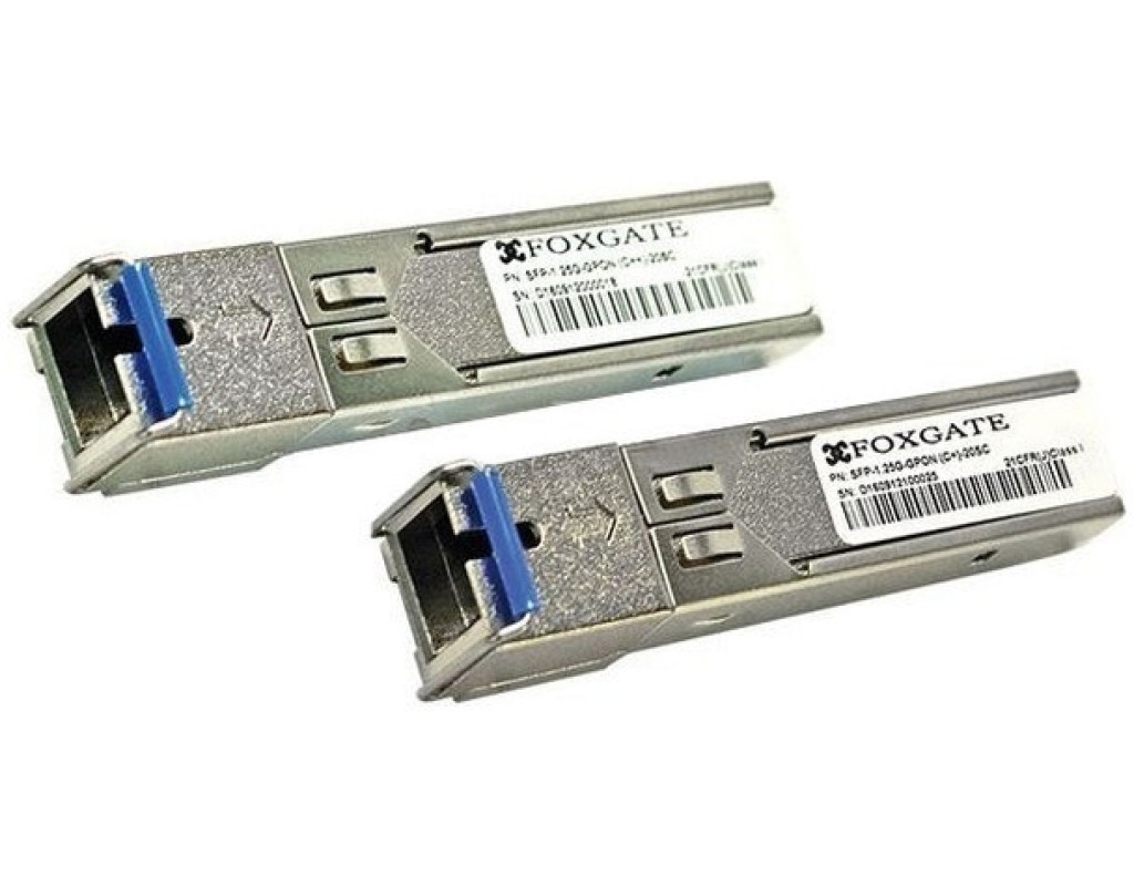 FoxGate 2,5 Gbps, 1490 nm Tx / 1310 nm Rx, SC, SFP, 20 km – SFP GPON трансивер для установки в оптический линейный терминал. Трансивер обеспечивает двунаправленную передачу данных со скоростью до 2,5 Гбит/с к абонентам и до 1,25 от абонентов по одному оптическому волокну в пассивной оптической сети (PON) на расстояние до 20 км. Основные особенности: