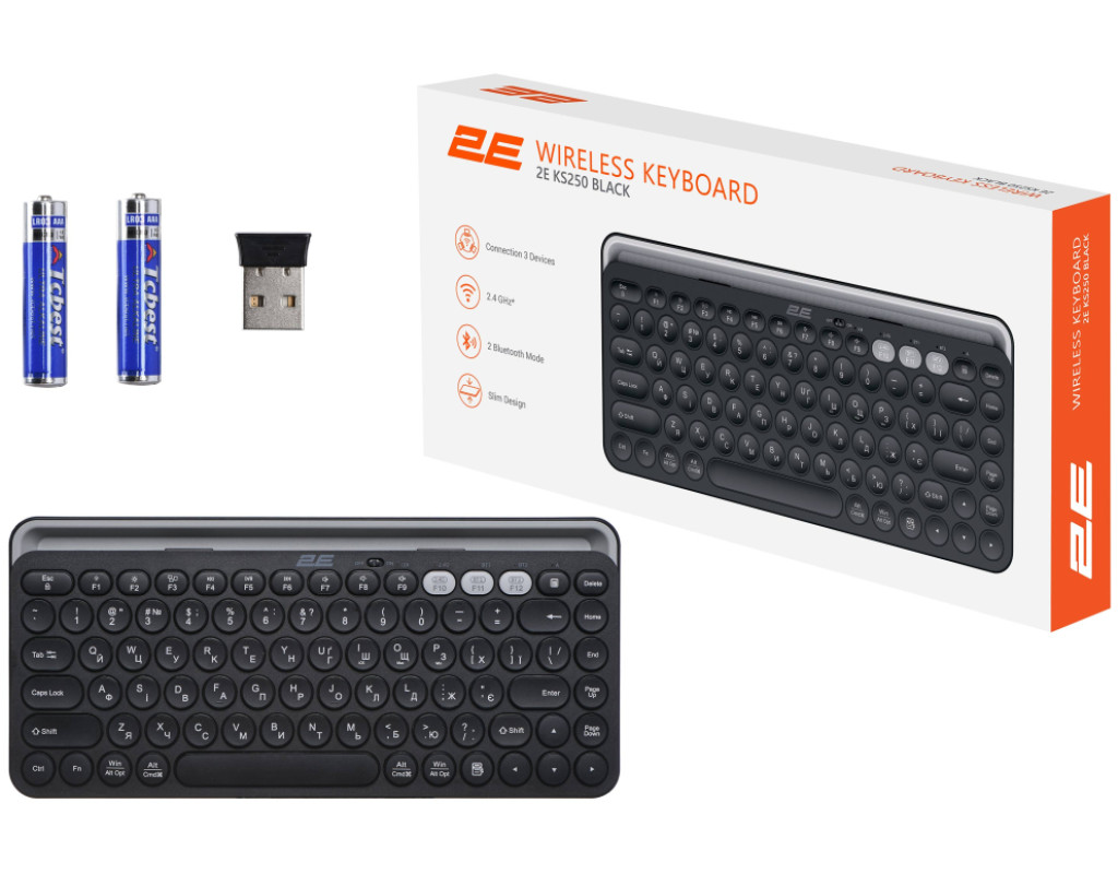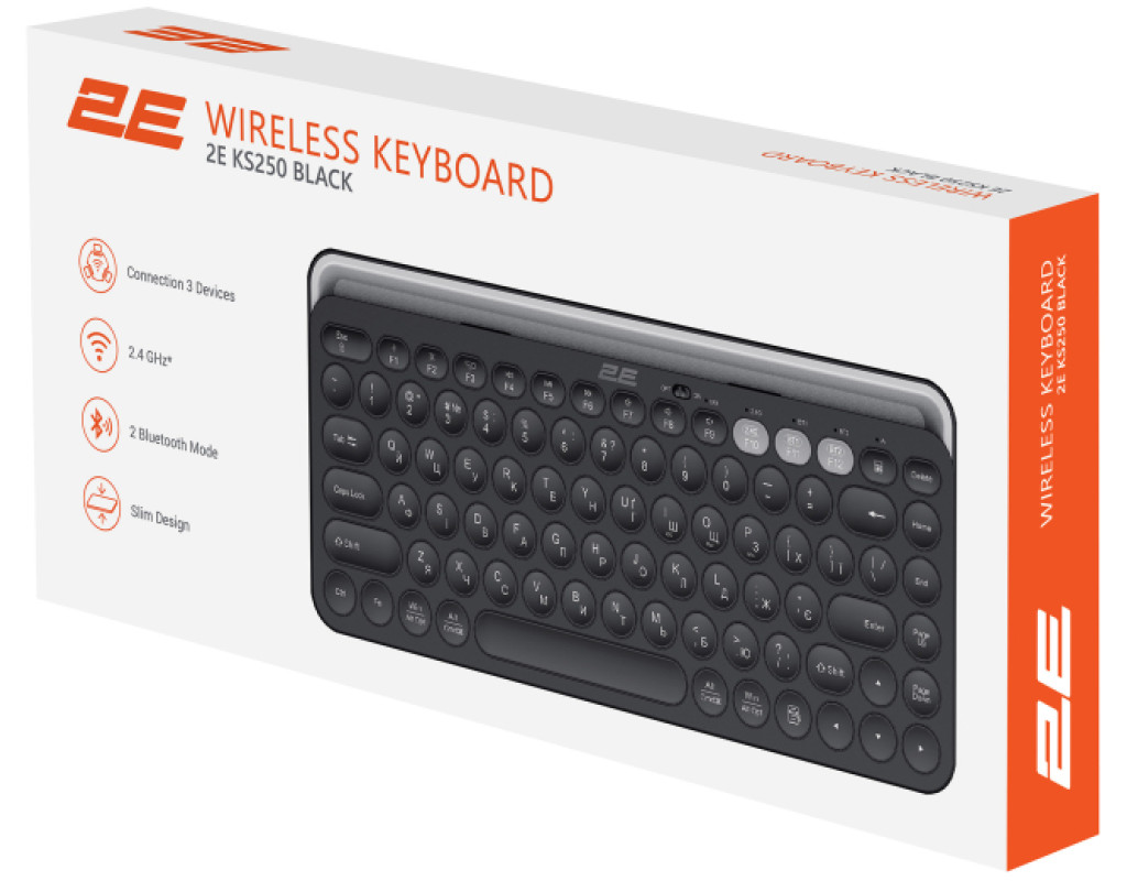 | Клавиатура 2E KS250 Wireless USB/Bluetooth UA Black (2E-KS250WBK_UA) — это ваш идеальный помощник для комфортного взаимодействия с разнообразными устройствами. Эта мультимедийная клавиатура, разработанная для пользователей, которые ценят практичность и универсальность, идеально подходит для работы со смартфонами, планшетами и даже телевизорами. Благодаря мембранной конструкции, ввод текста становится приятным и бесшумным опытом, а высокая чувствительность клавиш обеспечивает быструю реакцию на ваши действия. Особенностью данной модели является её беспроводное подключение через Bluetooth или USB адаптер 2.4 ГГц, что позволяет легко синхронизировать устройство с вашими любимыми гаджетами. Компактный формат клавиатуры делает её удобной для переноса, а прочная конструкция из ABS-пластика гарантирует длительный срок службы прибора. Вес клавиатуры составляет всего 799,4 г, что делает её стабильной при размещении даже крупных устройств. Клавиатура поддерживает украинскую и английскую раскладки, что делает её отличным выбором для поликультурных команд или людей, которые работают с разными языками. Плоские клавиши добавляют элегантности и современного стиля, повышая комфорт при наборе текста. Совместимость с различными операционными системами, такими как Windows, Chrome OS, Android, iOS, iPadOS, Mac OS и Linux, делает эту клавиатуру незаменимой для любого пользователя. Уникальная особенность — углубление с резиновым покрытием, которое служит надежным держателем для ваших устройств, обеспечивая устойчивость и защиту от падений. С клавиатурой 2E KS250 Wireless USB/Bluetooth UA Black вы получаете не только функциональность, но и надёжность и стиль, которые помогут вам сосредоточиться на главном — комфортной работе и общении. |