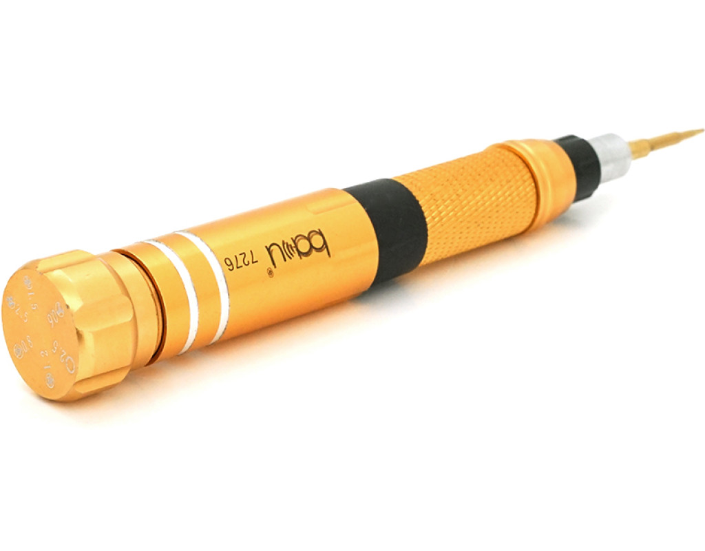 | Опис: Набір інструментів BAKU BA-7276 включає ручку з насадками і наступні насадки: +1,5, +2,5, Y06, *0.8, *1.2, hexagon M2.5. Характеристики: - ручка з насадками - Насадки: +1,5, +2,5, Y06, *0.8, *1.2, hexagon M2.5 |