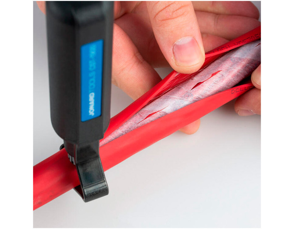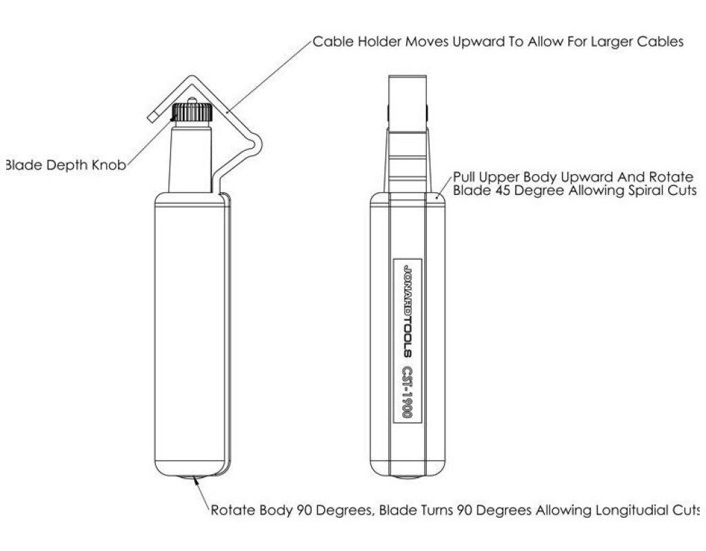 Стриппер Jonard CST-1900 – малогабаритный удобный инструмент для снятия внешних оболочек (толщиной до 3 мм) различных типов кабелей диаметром от 4,5 до 29 мм. Стриппер позволяет сделать круговой и продольный надрез для разделки конца кабеля. Также возможен спиральный надрез для разделки кабеля посреди длины или для более легкого удаления твердых оболочек. Подпружиненная V-образная скоба надежно удерживает кабель, контролируя усилие прорезания. Глубина выступа лезвия устанавливается простым поворотом регулирующего кольца. Нож типа JIC-CST-7915 при необходимости легко меняется самостоятельно. Покрытие рукоятки обеспечивает удобный нескользящий хват. Малые габариты и вес позволяют без напряжения проводить надрез одной рукой. Соответственно, стриппер удобен для хранения и переноски. Конструкция популярна у мастеров, разделывающих малогабаритные оптические кабели диаметром 5 – 8 мм, абонентские коаксиальные кабели RG-56, RG-6 и другие подобные. |