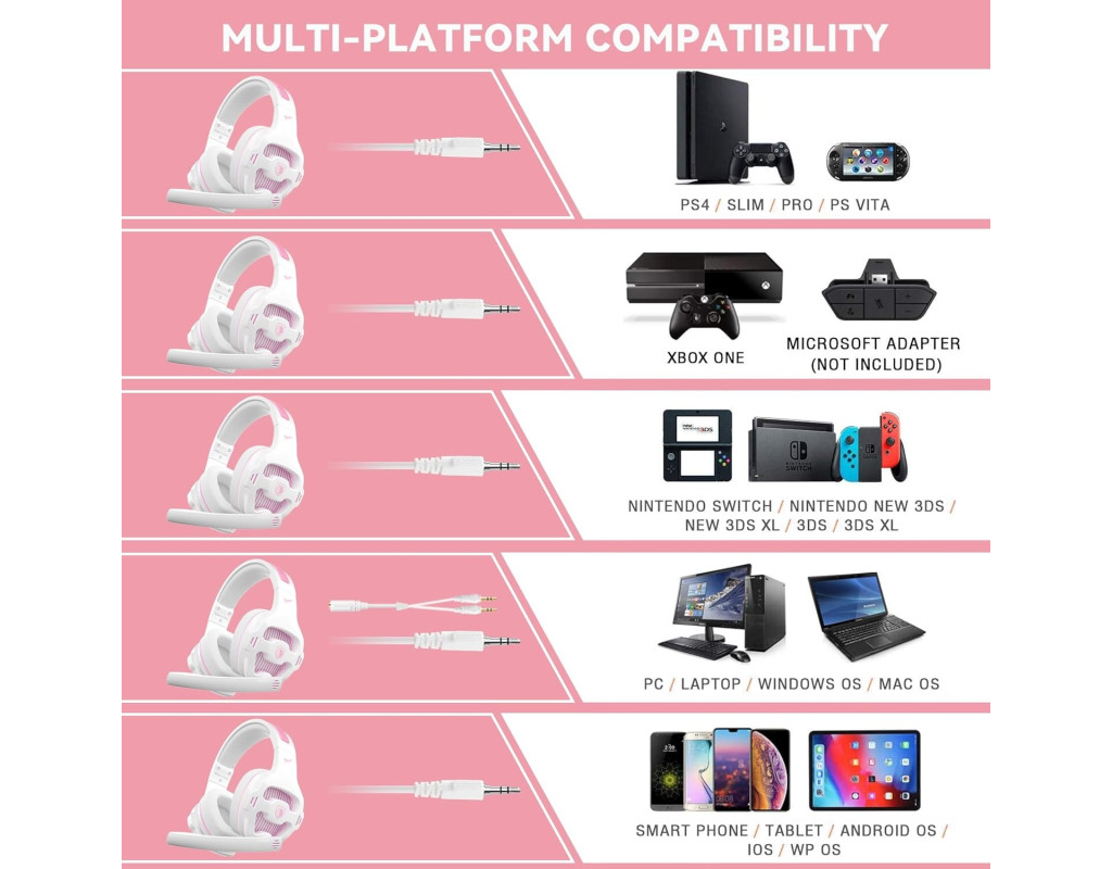 Эти универсальные наушники поставляются с 3.5 мм (4-полюсным) кабелем для непревзойденного звука в формате 3D, независимо от того, играете вы на ПК, Xbox One, PS4 или мобильном устройстве. КОМФОРТ В ТЕЧЕНИЕ ДЛИТЕЛЬНОГО ВРЕМЕНИ Саморегулирующиеся наушники обеспечивают удобство для разных размеров головы, охватывая ухо на 360 градусов, мягкий коже дизайн, удобная губка, которая не давит на ухо. ОМНИДИРЕКЦИОННОЕ ШУМОПОДАВЛЕНИЕ Микрофон обеспечивает геймерам четкость голоса. |