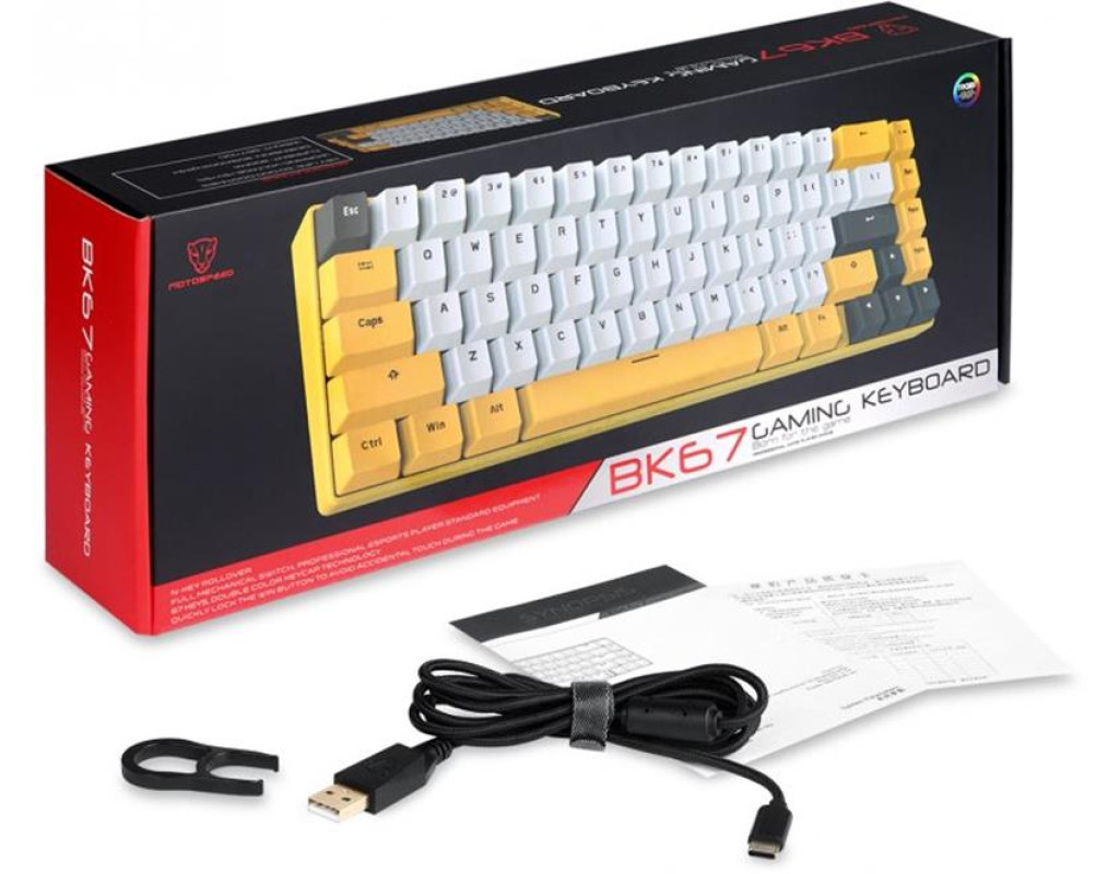-Двойной режим: проводной и Bluetooth (в играх рекомендуется использование проводного режима) -Вместительная батарея, обеспечивающая 10 часов непрерывной работы в Bluetooth режиме с включенной RGB подсветкой. -Клавиши двойного литья высокого давления -Высокотехнологичные переключатели, Longhua Blue -Игровой чип -Неограниченное количество одновременно нажатых клавиш NKRO -Подсветка RGB, 16,8 млн. цветов, 9 режимов -Предустановленные игровые режимы подсветки -Индивидуальные настройки пользователя для подсветки -Мягкий гибкий высококачественный кабель с застежкой -Резиновые противоскользящие ножки. Преимущества Профессиональный инструмент для победы Тщательно продуманная и спроектированная с вниманием к мелочам. Компактная клавиатура с полной подсветкой и индивидуальным стилем. Настоящая механика. Механические переключатели Longhua одного из лидеров рынка, предоставляют полный контроль над действом и сверхбыстрое износ. Надежность, долговечность и точность повторения усилия нажатия друг к другу от партии к партии. Увеличенный ресурс работы и улучшенная защита от окисления за счет уникальной конструкции переключателя. Больше никаких промахов, всегда в цель! Высокая точность износа механических переключателей всегда в той же точке хода переключателя, для любой кнопки. Выносливые кнопки. Выполнены за технологию двойного литья под высоким давлением с подвесной крепью, что придает непревзойденную износостойкость и гарантирует продолжительность жизни до 50 миллионов нажатий клавиш. Большие кнопки имеют двойной подвес и горизонтальную стабилизацию. NKRO Anti Ghosting Встроенный игровой чип исключает любые случайности. Блокировка клавиши Windows для предотвращения выхода из игровой сессии. Индивидуальные настройки RGB Кроме 9 видов световых эффектов и игровых режимов, с регулировкой яркости и скорости, для Counter Strike, League of Legend и др. есть настройка индивидуальных игровых режимов подсветки. Двухслойная плата. Непревзойденное качество монтажа и дополнительная жесткость. Значительно больше времени эксплуатации даже для самых эмоциональных игроков в самых экстремальных ситуациях. Бесперебойность передачи данных Высококачественный мягкий кабель и позолоченный разъем USB обеспечивают качество контакта и бесперебойность передачи данных, а застежка поможет организовать кабели на рабочем столе и в путешествии. Стабильность положения В любых условиях, клавиатура на своем городе благодаря противоскользящим ножкам из мягкой резины. |