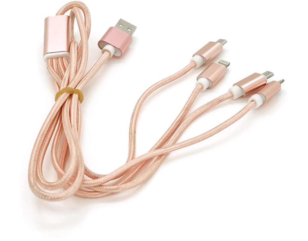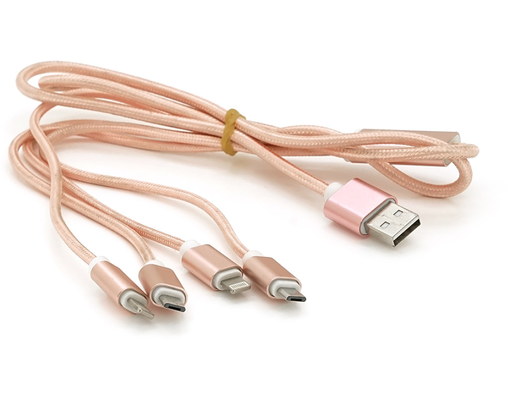 | Опис кабелю USB 2.0 DATA CABLE: 1. Тип роз`ємів: 2 x Lightning (для пристроїв Apple) та 2 x microUSB. 2. Стандарт USB: 2.0. 3. Довжина кабелю: 1,0 метр. 4. Форма кабелю: кругла. 5. Колір: рожевий. 6. Упаковка: ящик (Box). Цей кабель призначений для підключення пристроїв із роз`ємами Lightning (для продуктів Apple, таких як iPhone, iPad, iPod) та microUSB (для широкого спектру пристроїв, включаючи Android-смартфони, планшети та інші периферійні пристрої). Стандарт USB 2.0 забезпечує підтримку передачі даних на відповідній швидкості. Кабель має круглу форму та рожевий колір. Він поставляється в коробці для захисту та зручного зберігання. |