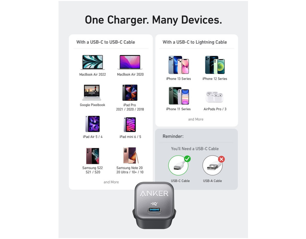 | Зарядное устройство Anker PowerPort 511 Nano III - 30W USB-C White (A2147G21) — это идеальное сочетание компактности и мощности. Его миниатюрный дизайн позволяет легко размещать зарядку между крупными штекерами на удлинителе, сохраняя при этом высокую функциональность. Благодаря использованию технологии GaN, это зарядное устройство обеспечивает впечатляющую мощность 30 Вт в корпусе толщиной всего 1,12 дюйма, что на 70% меньше стандартных аналогов. С этим зарядным устройством вы можете одновременно заряжать наушники, телефон, планшет и даже MacBook Air. Его поддержка быстрой зарядки Power Delivery и PowerIQ гарантирует, что ваши устройства получат максимальную энергию в кратчайшие сроки. Например, iPhone 14 Pro или iPad Air могут быть заряжены до 50% всего за 45 минут. Одним из ключевых преимуществ является защита ActiveShield 2.0, которая безупречно защищает ваши устройства, интеллектуально контролируя температуру более 3 миллионов раз в день. Выбирая Anker PowerPort 511 Nano III, вы получаете качество, надежность и безопасность в компактном корпусе. |