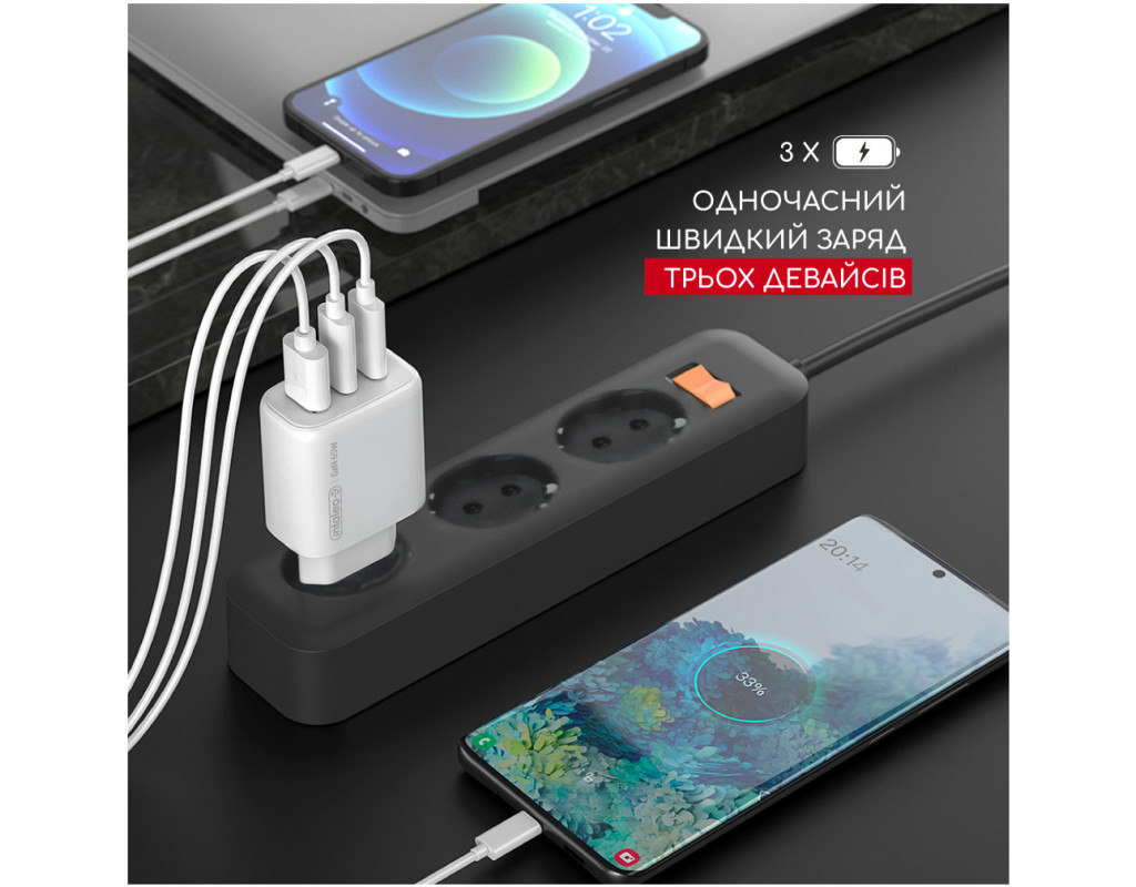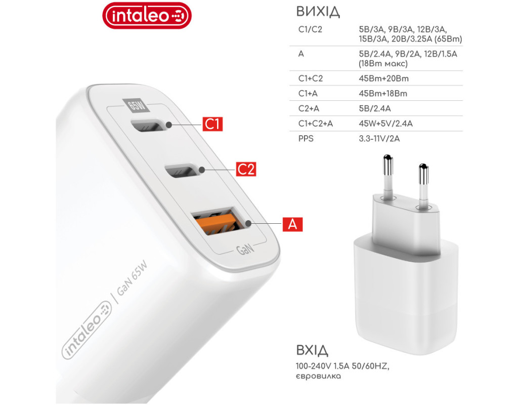 | Зарядное устройство Intaleo 65W GAN впечатляет своей мощностью и универсальностью. Этот адаптер питания с возможностью подключения к сети станет идеальным решением для всех ваших мобильных устройств благодаря поддержке самых современных протоколов быстрой зарядки, таких как Power Delivery 3.0, Programmable Power Supply (PPS) и Quick Charge 3.0. Интегрированная технология Smart IC (Auto ID) позволяет зарядному устройству автоматически определять тип подключенного устройства, оптимально адаптируя режим подачи питания для максимально быстрой и умной зарядки. Это позволяет избежать необходимости выбора зарядного устройства в соответствии с параметрами вашего смартфона или другого гаджета. Кроме того, технология PPS обеспечивает динамическое регулирование напряжения и силы тока в режиме реального времени, учитывая состояние зарядки подключенного устройства. Это гарантирует эффективное использование мощности до 65 Вт, обеспечивая максимальную скорость зарядки при безопасности для устройства. Благодаря наличию трёх разъёмов — два из которых USB Type-C и один USB-A — это зарядное устройство станет незаменимым помощником в подзарядке различных гаджетов. Его эргономичный дизайн позволяет удобно разместить кабели без риска их повреждения, а также добавляет дополнительный комфорт в процесс использования. Зарядное устройство Intaleo 65W GAN обеспечено защитой от перегрузки, что гарантирует безопасность гаджетов во время зарядки. Подключайте к сети и наслаждайтесь быстрой и надежной зарядкой ваших устройств без лишних забот. Это решение, которое удовлетворит все ваши потребности в быстрой и безопасной зарядке. |