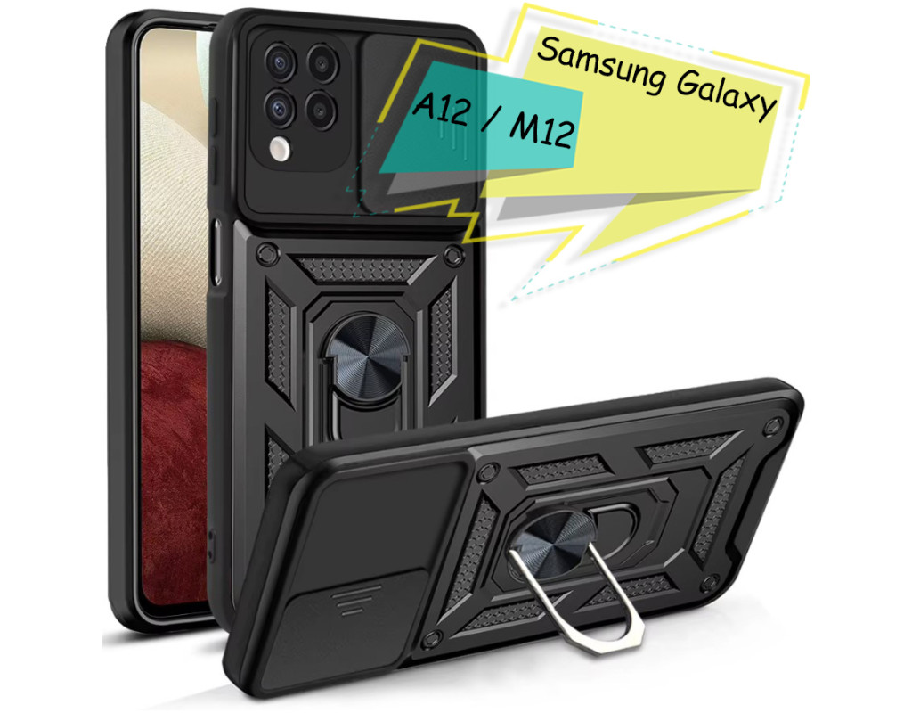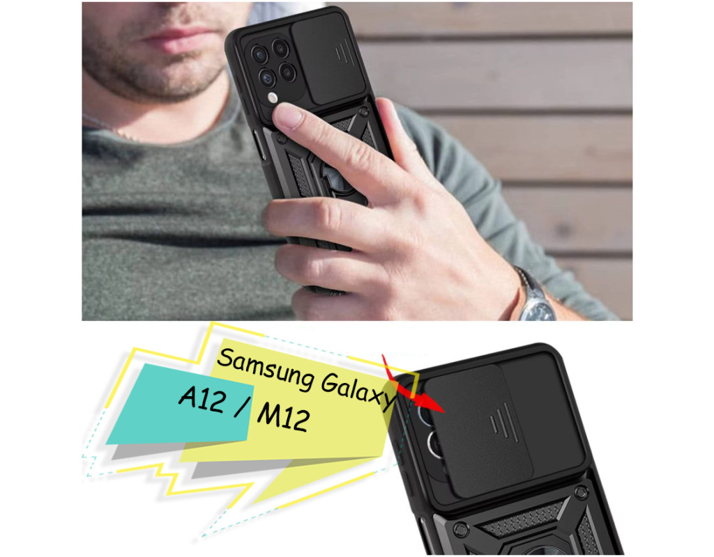 совместимость с моделями - Samsung Galaxy A12, Samsung Galaxy M12, Тип чехла для телефона - накладка, Назначение - модельный, Материал - пластик, Цвет - черный
