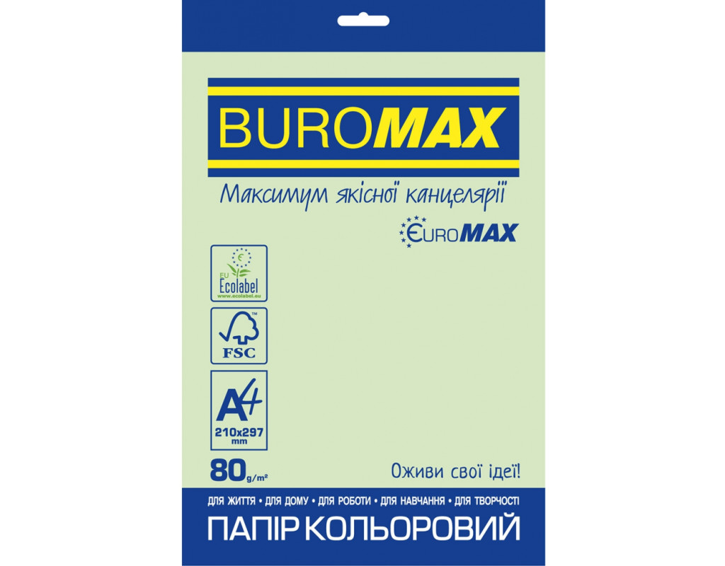 Бумага Buromax А4 PASTEL EUROMAX, light green, 20 sheets, 80g (BM.2721220E-15)