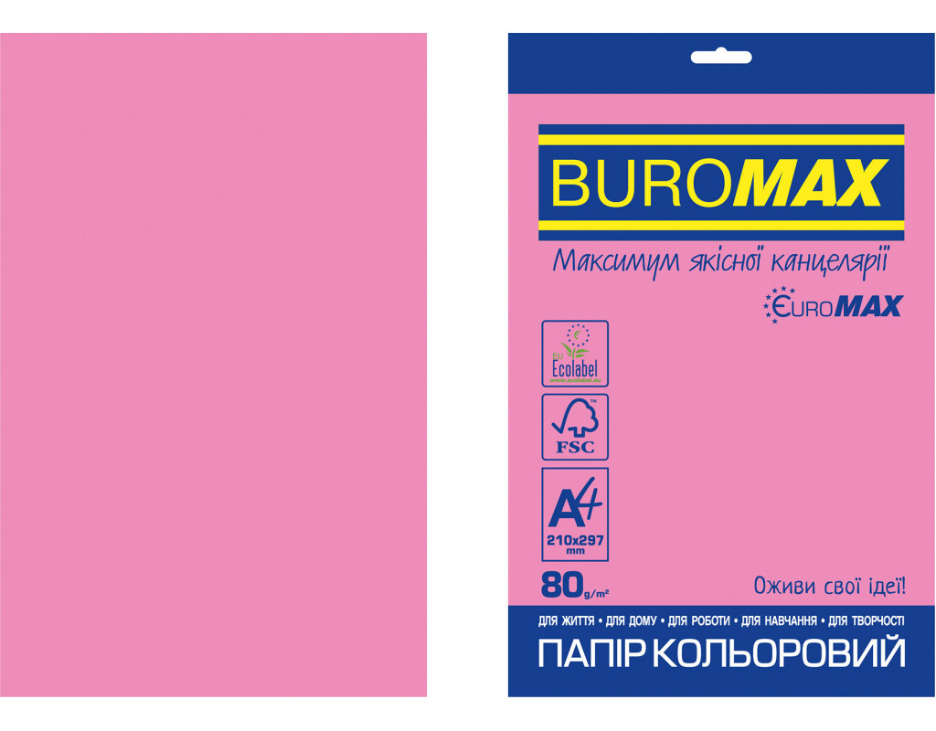 Бумага Buromax А4, 80g, NEON pink, 20sh, EUROMAX (BM.2721520E-10)