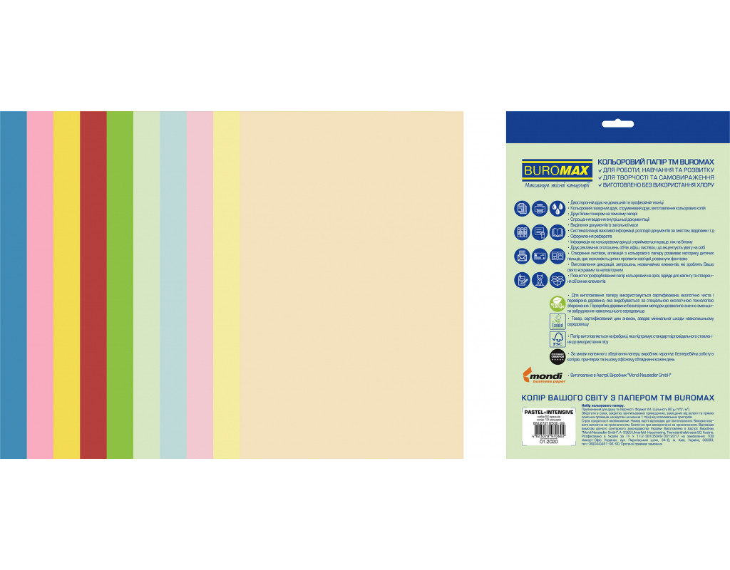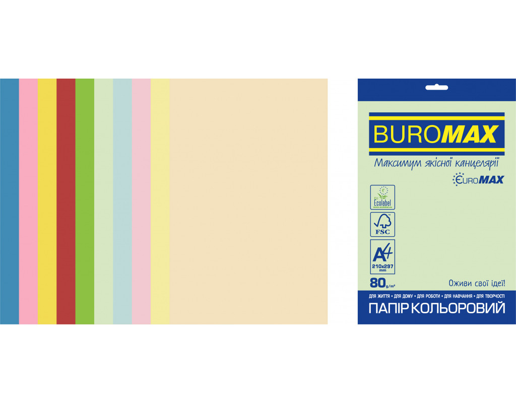 Бумага Buromax А4, 80g, PASTEL+INTENSIVE, 10colors, 50sh, EUROMAX (BM.2721650E-99)