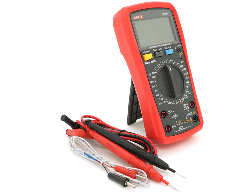 | Мультиметр UNI-T UT105+ – надійний та універсальний прилад для вимірювання різних параметрів електричних схем. Він призначений для використання як професіоналами, так і аматорами електроніки та електрики. UT105 має широкий функціонал і простий у використанні, що робить його ідеальним інструментом для діагностики та ремонту електричного обладнання. Використання: - Вимірювання постійної та змінної напруги на різних рівнях. - Визначення постійного струму для перевірки ланцюгів та проводки. - Вимір опору для визначення значень опорів в електричних схемах. - Перевірка працездатності та ефективності батарей та акумуляторів. - Мультиметр також може використовуватися для перевірки ланцюгів на коротке замикання та контролю ланцюгів змінного струму. Характеристики: - Постійна напруга: 200mV / 2V / 20V / 200V / 1000V - Змінна напруга: 2V / 20V / 200V / 750V - Постійний струм: 200mA / 10A - Діапазон опору: 200W / 2kW / 20kW / 200kW / 2MW / 20MW - Живлення: 9V батарея (тип 6F22) - Розмір дисплея: 60 x 54 мм - Колір: Прилад - сірий, Holster - червоний - Вага: 352 г - Розміри: 179 x 88 x 39 мм Мультиметр UNI-T UT105+ - незамінний інструмент для електронних та електричних робіт, який забезпечує точні вимірювання та зручність використання у будь-яких умовах. |