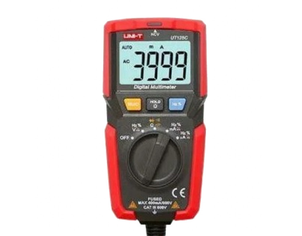 UNI-T UT125C – это надежный карманный мультиметр с дисплеем на 4000 отсчётов и функцией защиты от перенапряжения. Используется для измерения постоянного и переменного напряжения и тока, сопротивления, емкости, частоты, а также для прозвонки цепи и тестирования диодов. |