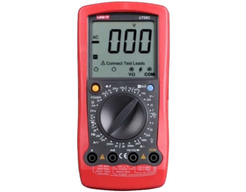 емкость (С), переменное напряжение (Vac), переменный ток, постоянное напряжение (Vdc), постоянный ток, сопротивление (R), температура (T), тестирование диодов, тестирование транзисторов |
