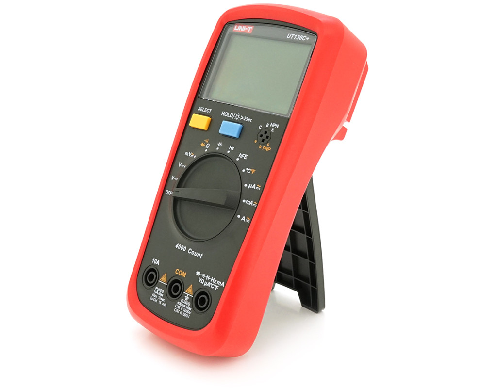 | Мультиметр UNI-T UT136C+ є універсальним вимірювальним пристроєм, який може використовуватися як для професійних цілей, так і для домашнього використання. Він має широкий спектр функцій і простий у використанні. Характеристики: - Постійна напруга: до 1000 В, похибка ±(0.7%+3) - змінна напруга: до 1000 В, похибка ±(1%+3) - Постійний струм: до 10 А, похибка ±(1%+3) - змінний струм: до 10 А, похибка ±(1.2%+5) - Опір: до 40 МОм, похибка ±(0.8%+2) - Місткість: до 40 мФ, похибка ±(3%+5) - частота: від 400 Гц до 40 мГц, похибка ±(0.1%+4) - Температура: від -40°C до 100°C (від -40°F до 183°F), похибка ±(1%+4) для °C та ±(1.5%+5) для °F Загальні характеристики: - Живлення: 1.5 В батарея (R6) × 2 - Дисплей: 4000-розрядний, РК, 56,5×36 мм - Розмір: 175×83×53 мм - Вага: 330 г Комплектація: 1. Цифровий мультиметр UNI-T UT136C + – 1 шт. 2. Батареї – 2 шт. 3. Комплект вимірювальних щупів – 1 шт. 4. Термопара – 1 шт. 5. Посібник користувача – 1 шт. Мультиметр UNI-T UT136C+ забезпечує точні вимірювання та широкий функціонал, що робить його ідеальним інструментом для електронних працівників, інженерів, електриків та ентузіастів. |