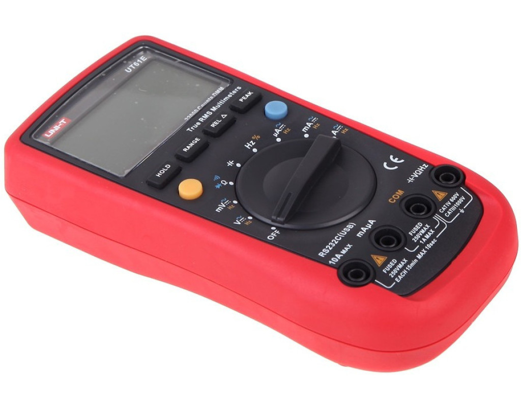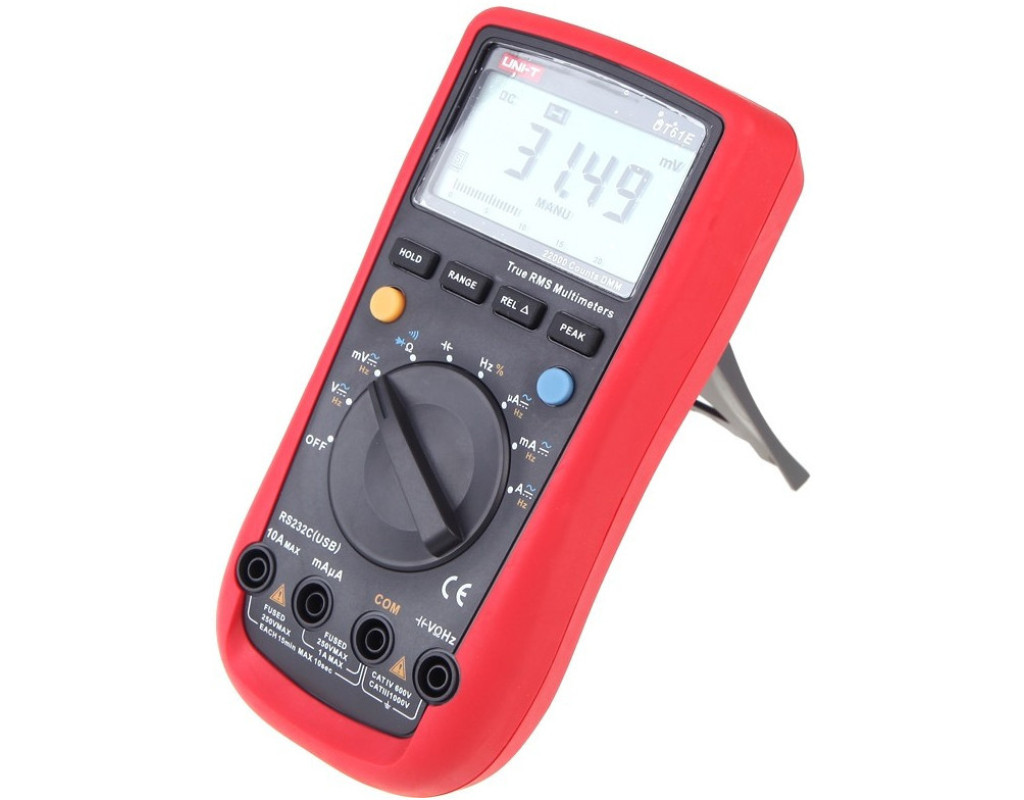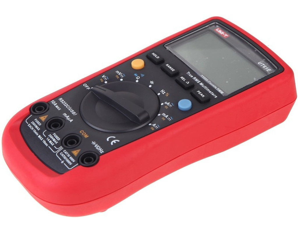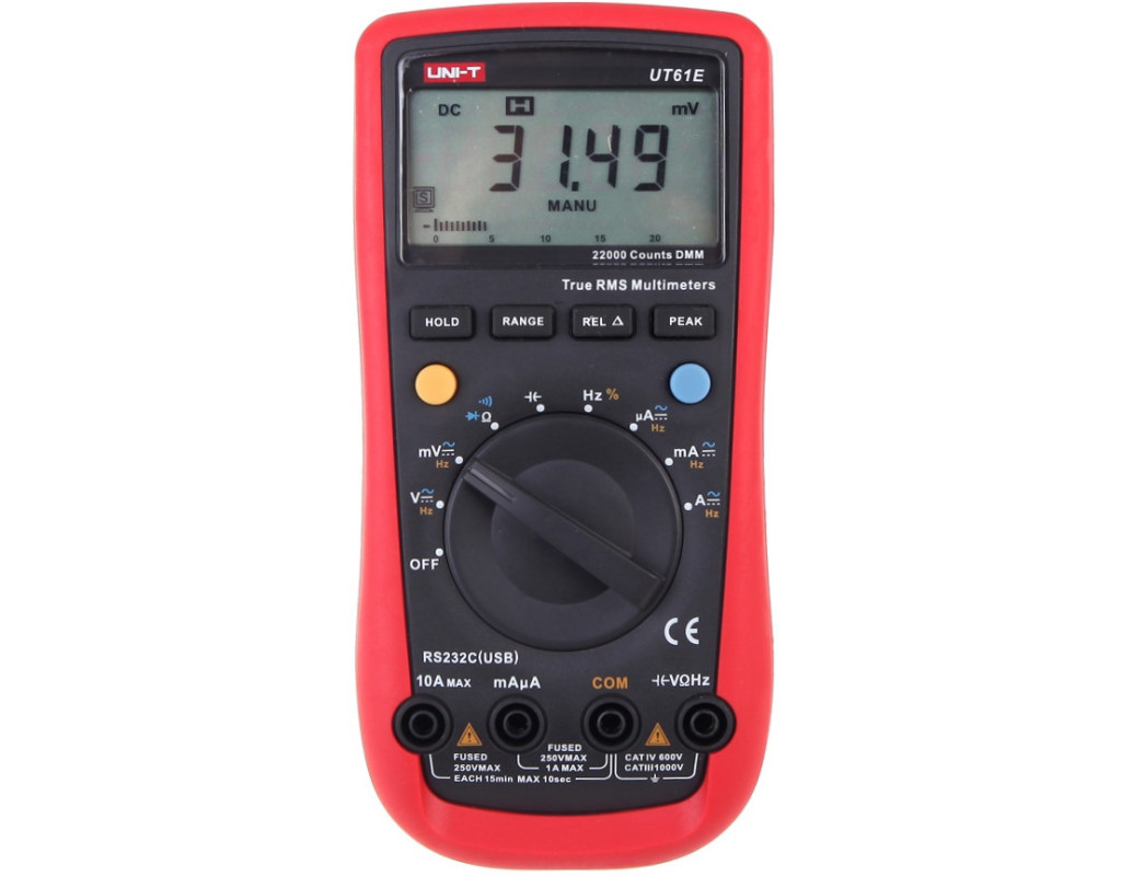 Мультиметр универсальный автомат UT61E – надежный измерительный прибор от проверенной компании UNI-T. TRUE RMS. Автоматический выбор режимов измерений. Измерение частоты до 220 МГц. Фиксация пиковых значений. Удержание результатов. Подсветка экрана. Подключение к ПК. Аналоговая шкала. Особенности:Мультиметр UNI-T UT61E способен работать со всеми основными параметрами, но также обладает расширенными возможностями. Он измеряет: Кроме этого, он способен проверять транзисторы, тестировать диоды и осуществлять прозвонку электрической цепи. Автоматический выбор режимов измерений. Выбор режимов осуществляется автоматически. Это означает, что вам не обязательно знать предварительный результат. Необходимо просто выбрать тот параметр, с которым проводятся измерения и прибор сам определить диапазон. Подключение к ПК. Мультиметр UNI-T UT61E способен подключаться к персональному компьютеру. Таким образом можно передавать полученные результаты, а также обрабатывать их при помощи специального программного обеспечения. |