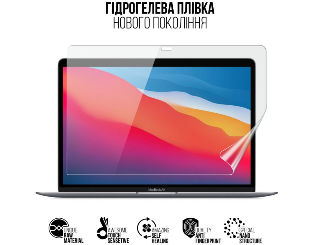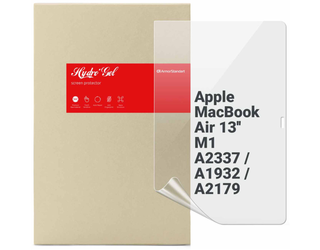 Назначение - для ноутбука, Вид покрытия - защитное, гидрогелевая, Совместимость с моделями - MacBook Air 13 M1 2020, Количество в упаковке - 1 шт