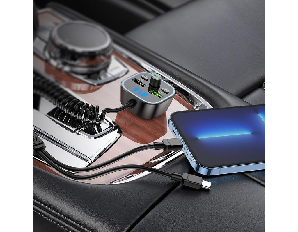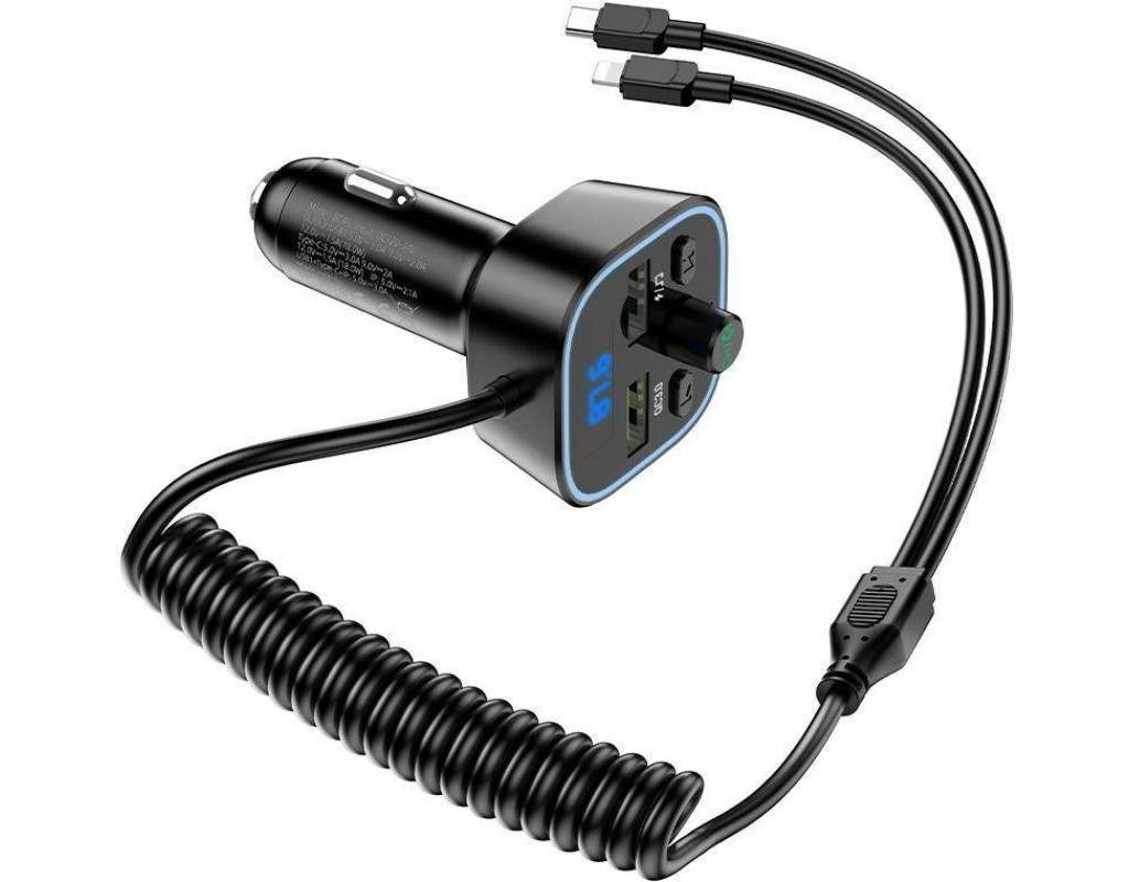 Диагональ дисплея - 0.5'', Интерфейс - USB, Bluetooth, USB Type-C, 10 м, Минимальный частотный диапазон, МГц - 87.5, Максимальный частотный диапазон, МГц - 108, управляется с телефона, управление кнопками на трансмиттере, Воспроизводимые форматы - MP3, WMA, WAV, APE, FLAC, Режимы воспроизведения - All, Дополнительные характеристики - QuickCharge 3.0, Цвет - черный