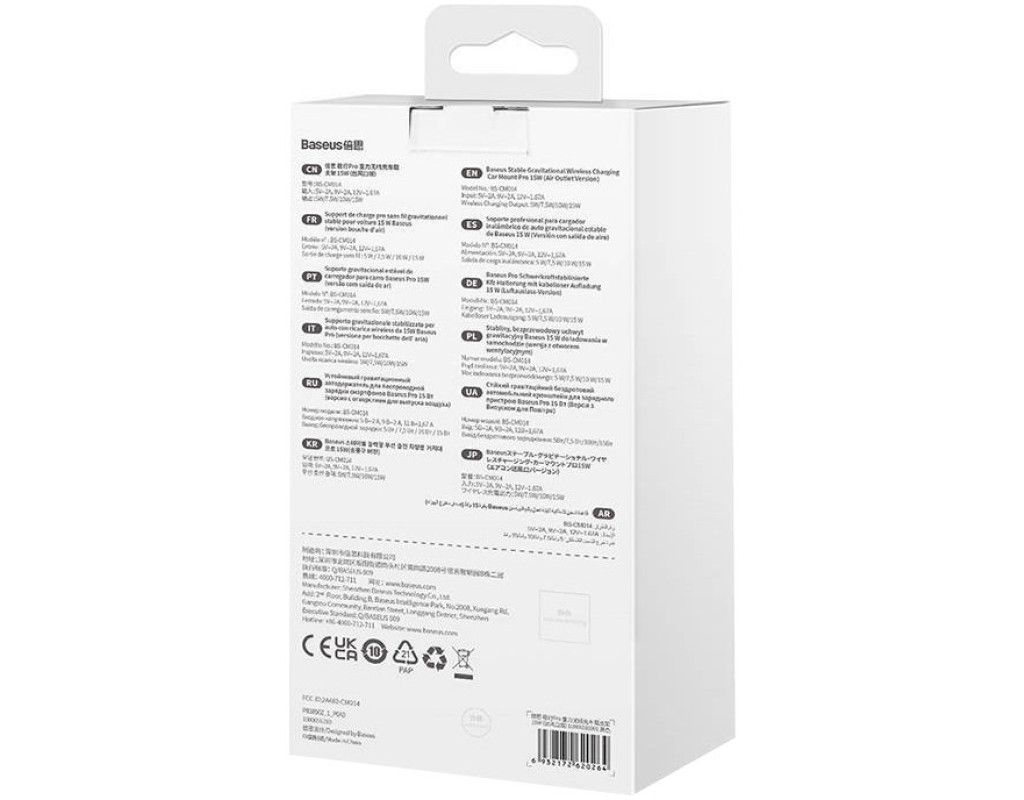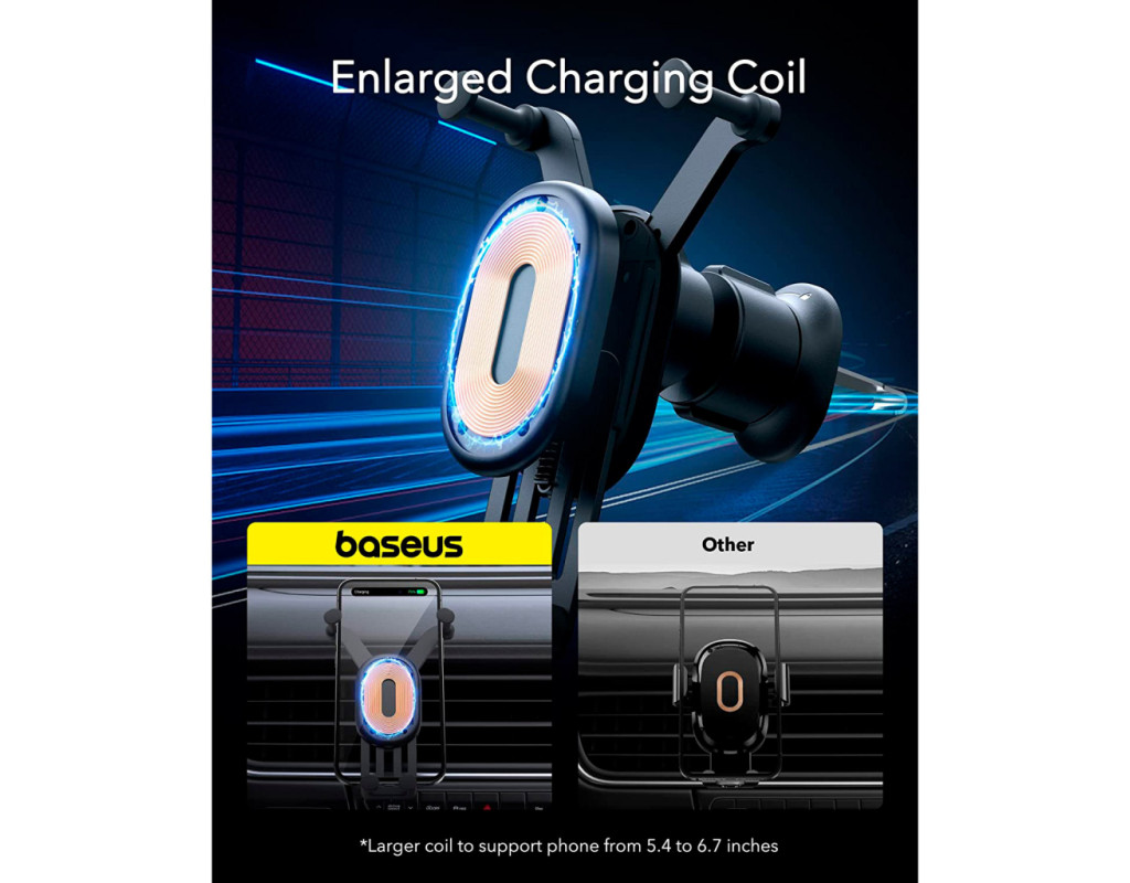 Baseus Wireless Charge Pro 15W - Элегантный, функциональный и стильный инновационный автомобильный держатель с беспроводной зарядкой. Новая версия крепления на решетку от Baseus обеспечивает надежную фиксацию, стабилизацию и безопасность вашего смартфона в автомобиле даже на очень сложной дороге Основные характеристики:
